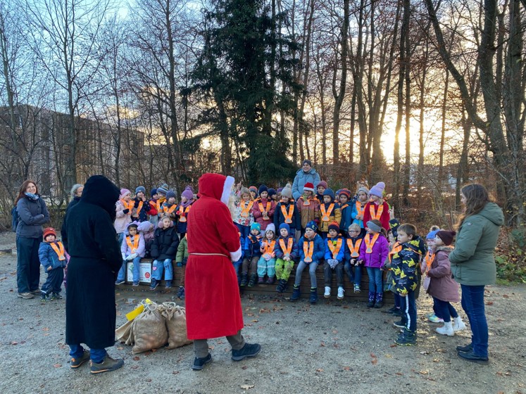 Am 6. Dezember besuchte uns wieder der Samichlaus. Wir trafen ihn und den Schmutzli auf dem Pärklispielplatz, wo wir ihnen unsere Lieder und Verse vortrugen.