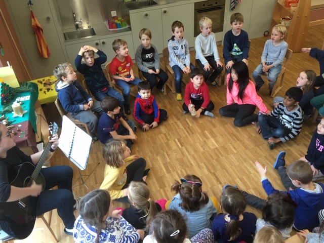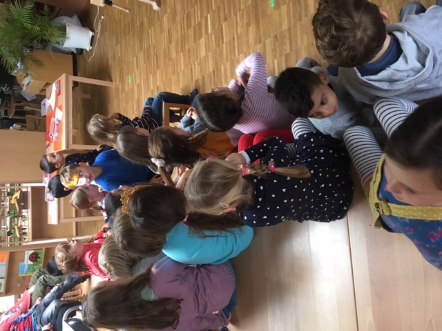 Die Erstklässler sind schon fast ein halbes Jahr in der Schule und vermissen den Kindergarten immer noch ein bisschen. Deshalb äusserten ein paar Buben den Wunsch, wieder mal im Kindergarten spielen zu können. Also statteten wir in allen drei Kindergärten Aare im Dezember einen Besuch ab. Wir assen Marroni, sangen, mixten Smoothies und spielten.