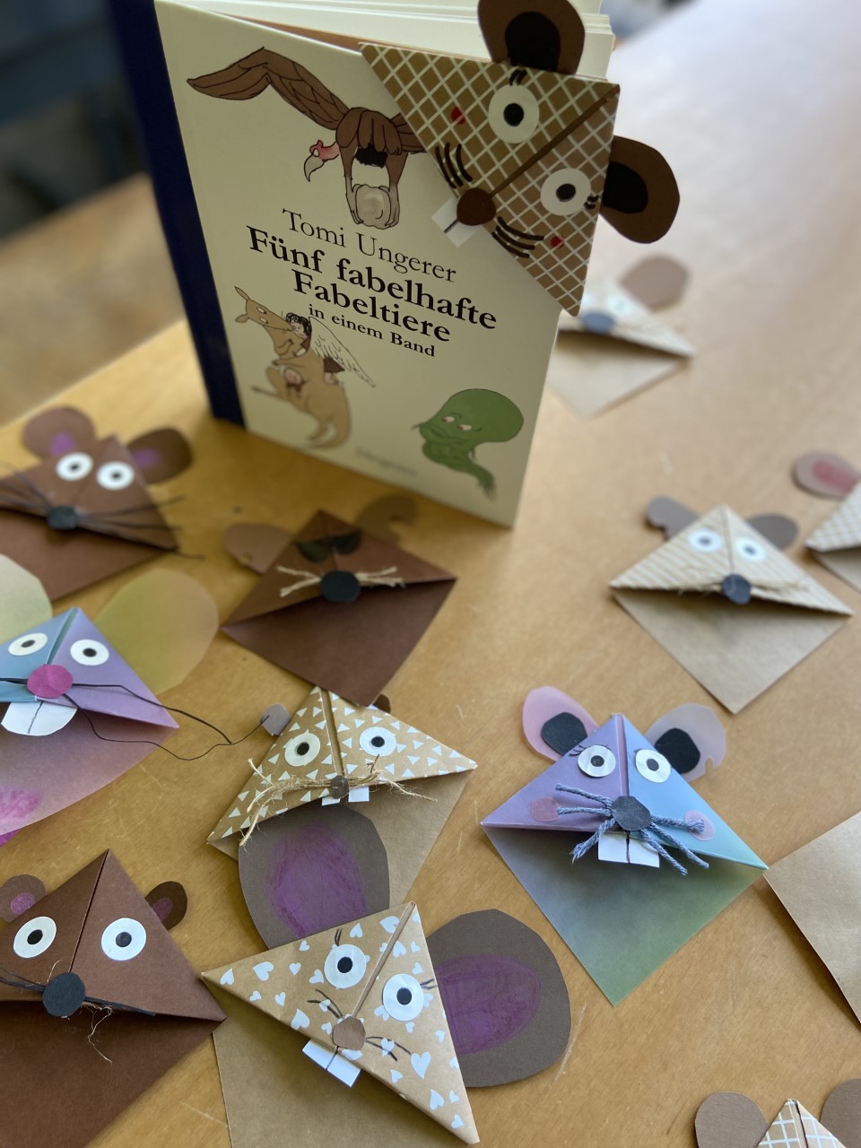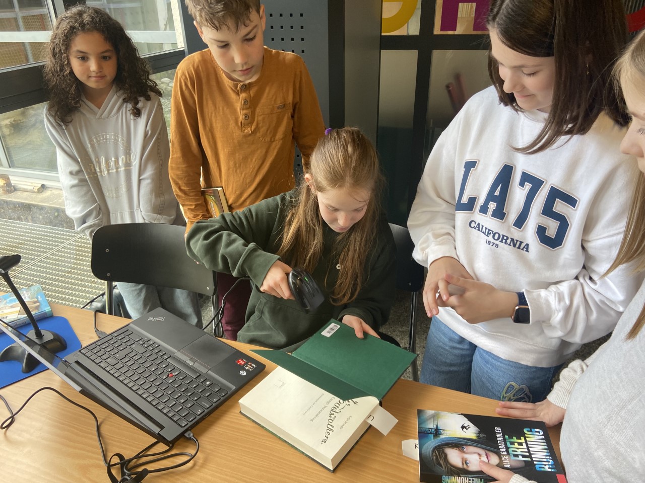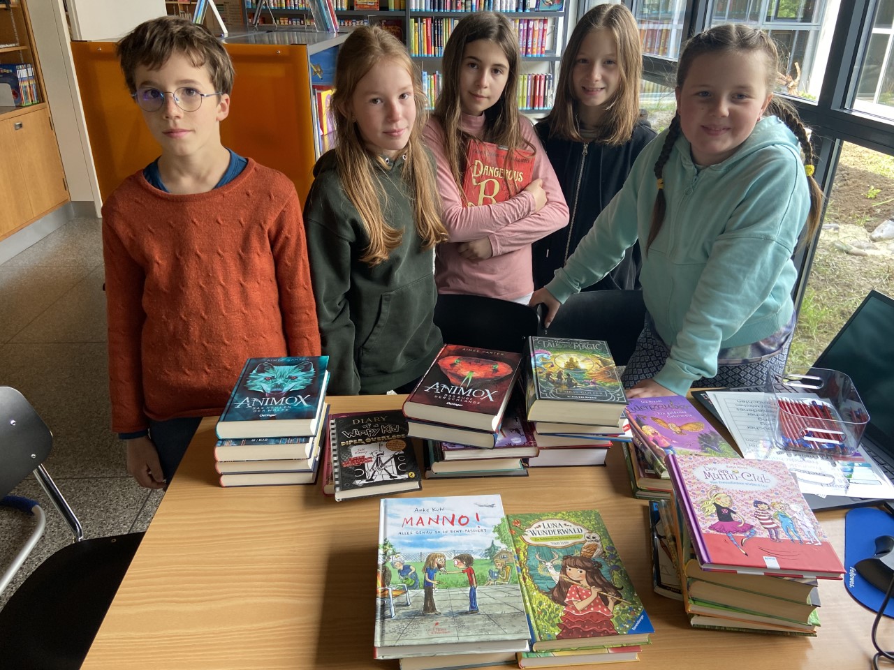 Während der Projektwoche vom 24.- 28. April hat eine Gruppe von lesefreudigen 3.-5. Klässlern unter dem Kurstitel `Leseratten in der Schulbibliothek` die Bibliothek von A-Z kennengelernt, Bücher für die Bibliothek ausgewählt, ein Buchzeichen gebastelt, Leseratten aus antiken Büchern gefaltet, ein eigenes Antolin- Quiz geschrieben und zwischen den Büchern eine ganze Nacht mit viel lesen und wenig schlafen verbracht. Nebenbei wurden sich auch noch zu `Bibliotheksmitarbeitern` ausgebildet. Sie werden ab jetzt donnerstags von 15.15 Uhr bis 16.30 Uhr zu zweit die Bibliothekausleihe betreuen dürfen.