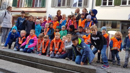 Zwei Mal im Jahr gibt es im Aareschulhaus einen klassenübergreifenden Themenorgen. Wir gehen vom Jahresmotto aus und planen einen passenden Morgen dazu. "Aare kunterbunt" heisst das aktuelle Motto. Wir entschieden, die schönen, farbigen Aarauer Giebel genauer anzuschauen und dazu eine schöne Zeichnung zu machen. So wurde an einem Mittwoch Morgen, Mitte Oktober, die Altstadt von SchülerInnen und KindergärtnerInenn überflutet. Die kleineren Kinder übertrugen das Gesehene zuerst mit Strassenkreide auf den Boden, die MittelstufenschülerInnen hatten noch eine kurze Satdtführung. Ihre Werke erarbeiteten sie auf dem Ipad. Alle Zeichnungen kann man im Primarschulhaus bestaunen.