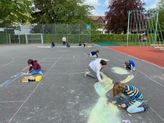 Nach den Frühlingsferien fand die Projektwoche statt. Es wurde fleissig gebastelt, gesungen, gebrätelt im Wald, gespielt, gewerkelt, geturnt und gegessen. Am Freitag zum ersten Mal das Schulhausfest statt. Dies war ein sehr schöner Anlass.