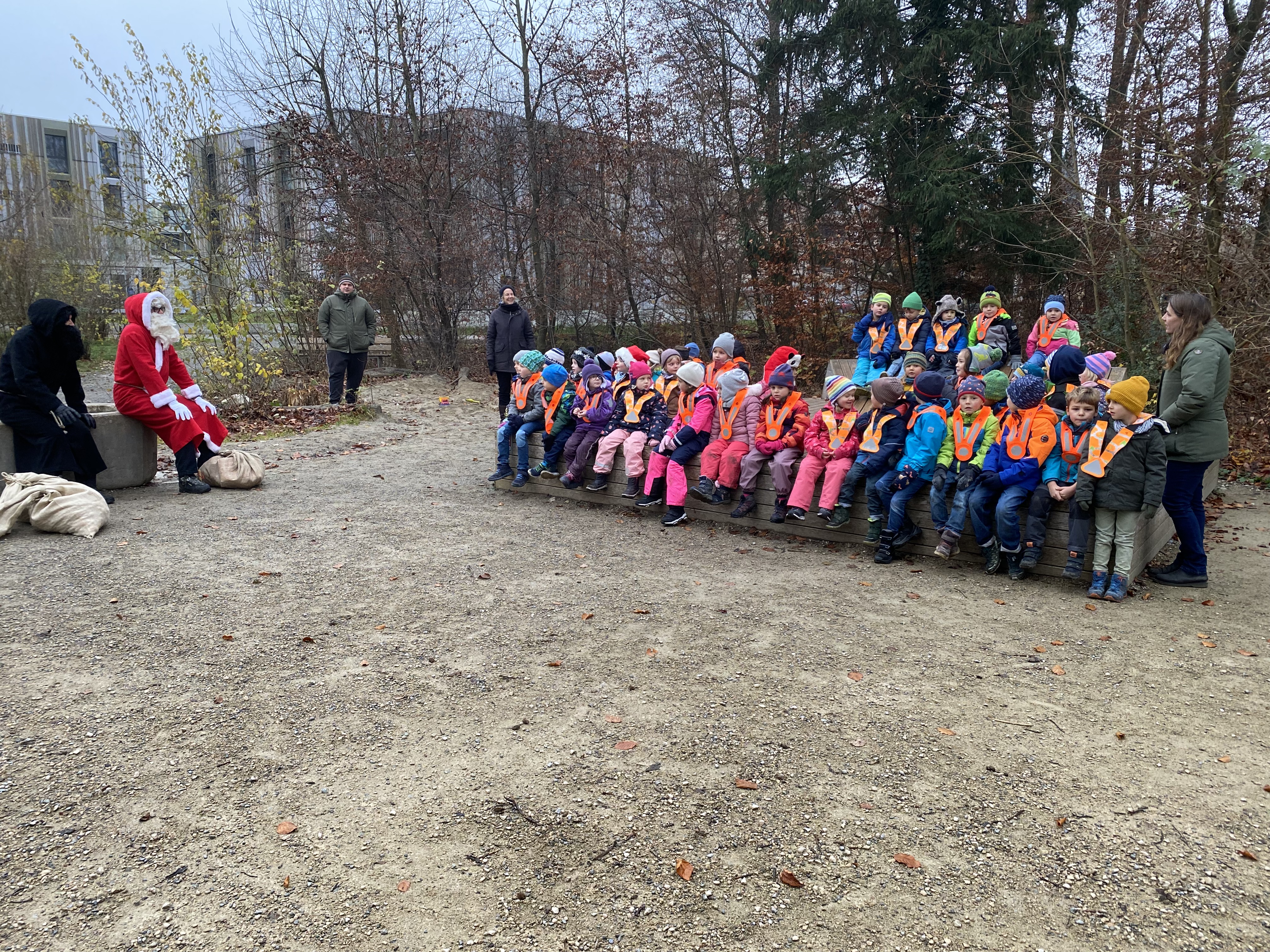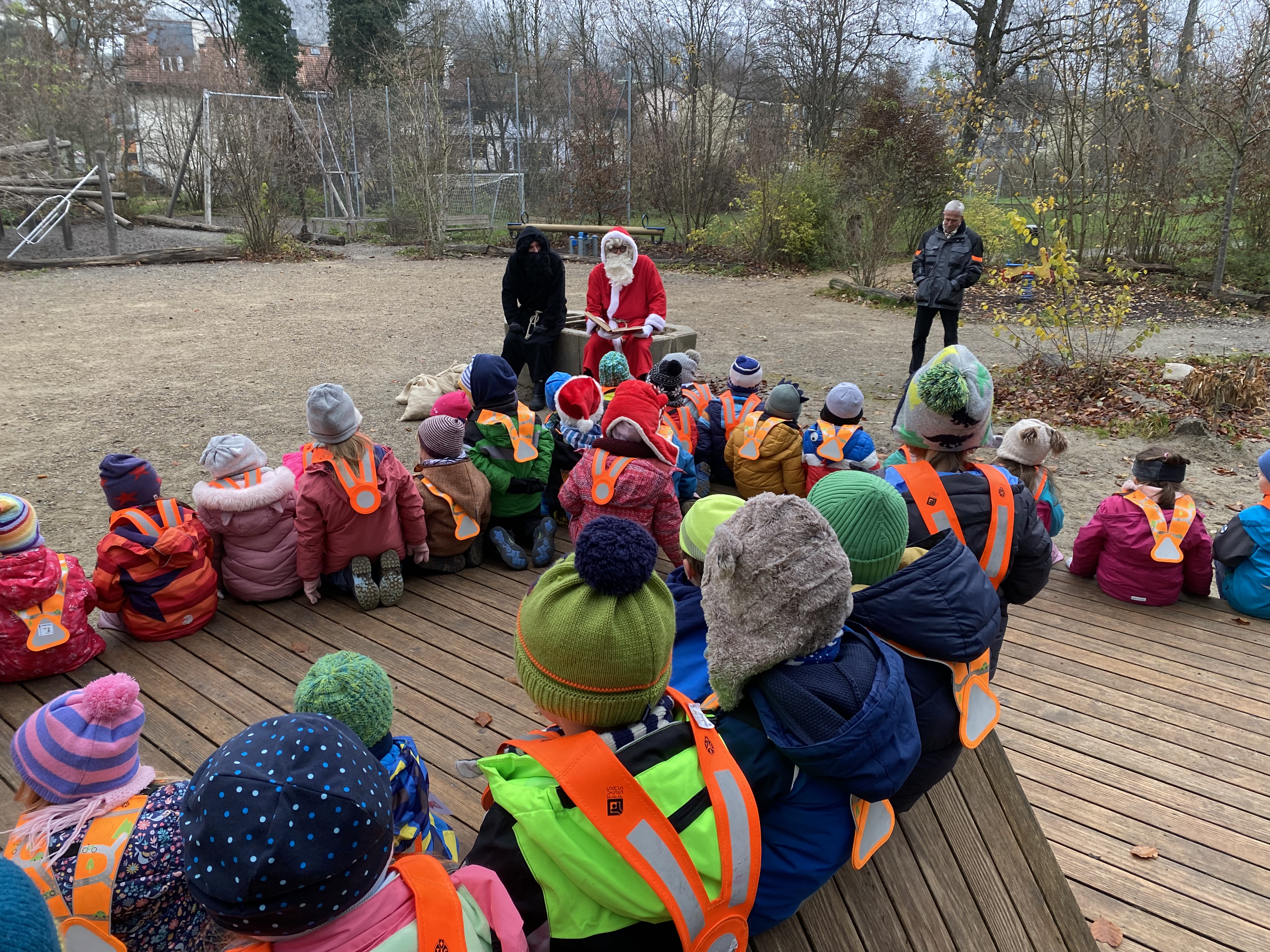 Glücklicherweise haben wir auch dieses Jahr den Samichlaus mit seinem Gehilfen, dem Schmutzli, draussen beim Wäldchenspielplatz angetroffen.