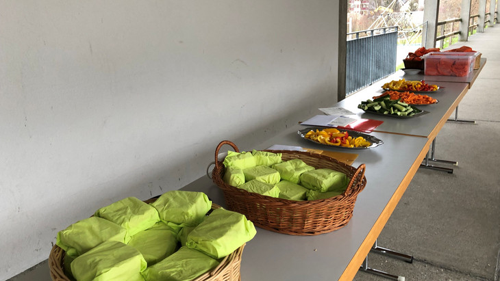 In der Küche wurden Gurken, Rüebli und Paprikas zubereitet und in mundgerechte Stücke geschnitten. Zum Glück brauchte es nur zwei Pflaster.