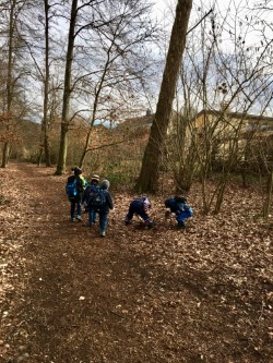 Clean up Auf unserem heutigen Weg in den Wald haben wir uns mit Plastikhandschuhen und einem grossen Kehrichtsack auf die Suche nach Abfall gemacht.Es war eindrücklich, wie viel Müll die Kinder innert kürzester Zeit gesammelt haben!Papier, Plastiksäcke, Dosen, Flaschen und unzählige Zigarettenstummel landeten im Abfallsack.Zur Belohnung gab es Schlangenbrot für alle.Anja Bernasconi & Sarah Lechenr
