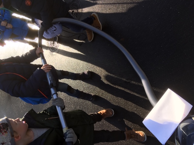Als wir vom Hallenbad wieder zurück ins Schulhaus liefen, fanden wir auf der Strasse einen hellgrauen, funktionierenden Staubsauger. Diesen trugen wir ins Aareschulhaus, am Ende taten uns die Hände weh! Nun wird in der Schule wie wild - neben dem Schulstoff - noch das Zimmer gesaugt!1./2. Klasse und Klassenlehrer