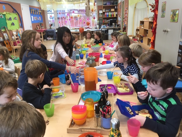 Die Erstklässler sind schon fast ein halbes Jahr in der Schule und vermissen den Kindergarten immer noch ein bisschen. Deshalb äusserten ein paar Buben den Wunsch, wieder mal im Kindergarten spielen zu können. Also statteten wir in allen drei Kindergärten Aare im Dezember einen Besuch ab. Wir assen Marroni, sangen, mixten Smoothies und spielten.