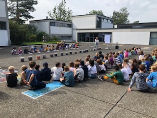 Die Studenten der PH (Frau Graf und Herr Ergeneli) organisierten einen fächerübergreifenden Unterricht auf unserem Pausenplatz. Jedes Kind durfte entweder Rollschuhe, ein Skateboard oder ein Trottinett mitnehmen. Auf dem Pausenplatz gab es verschiedene Posten, die Geschicklichkeit wurde trainiert. 2./3. Klasse