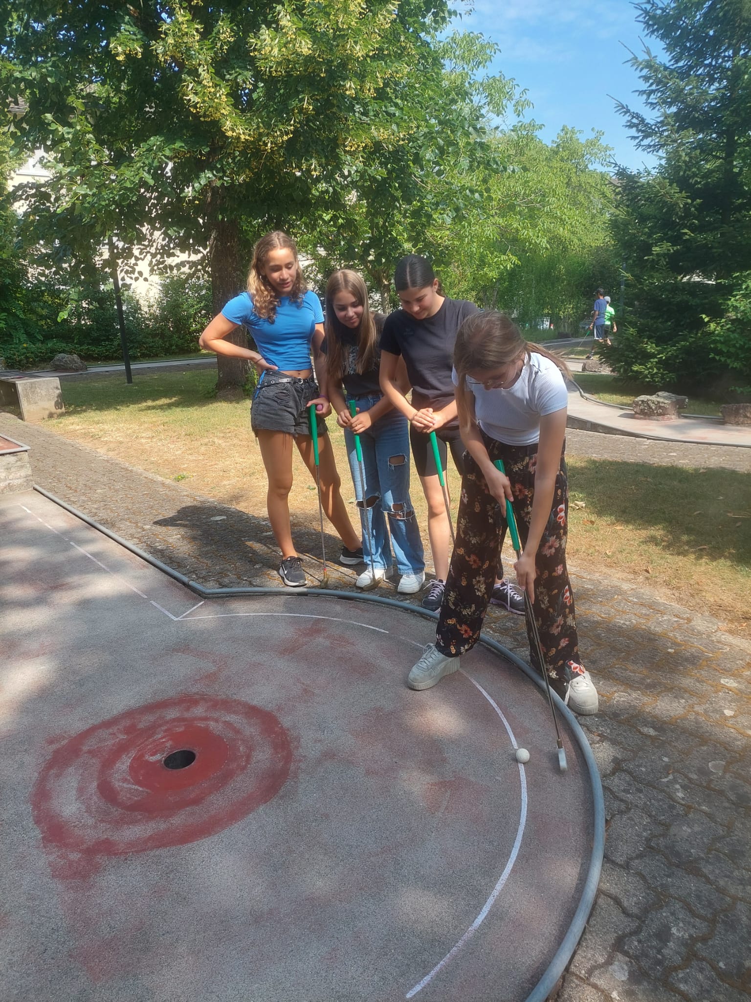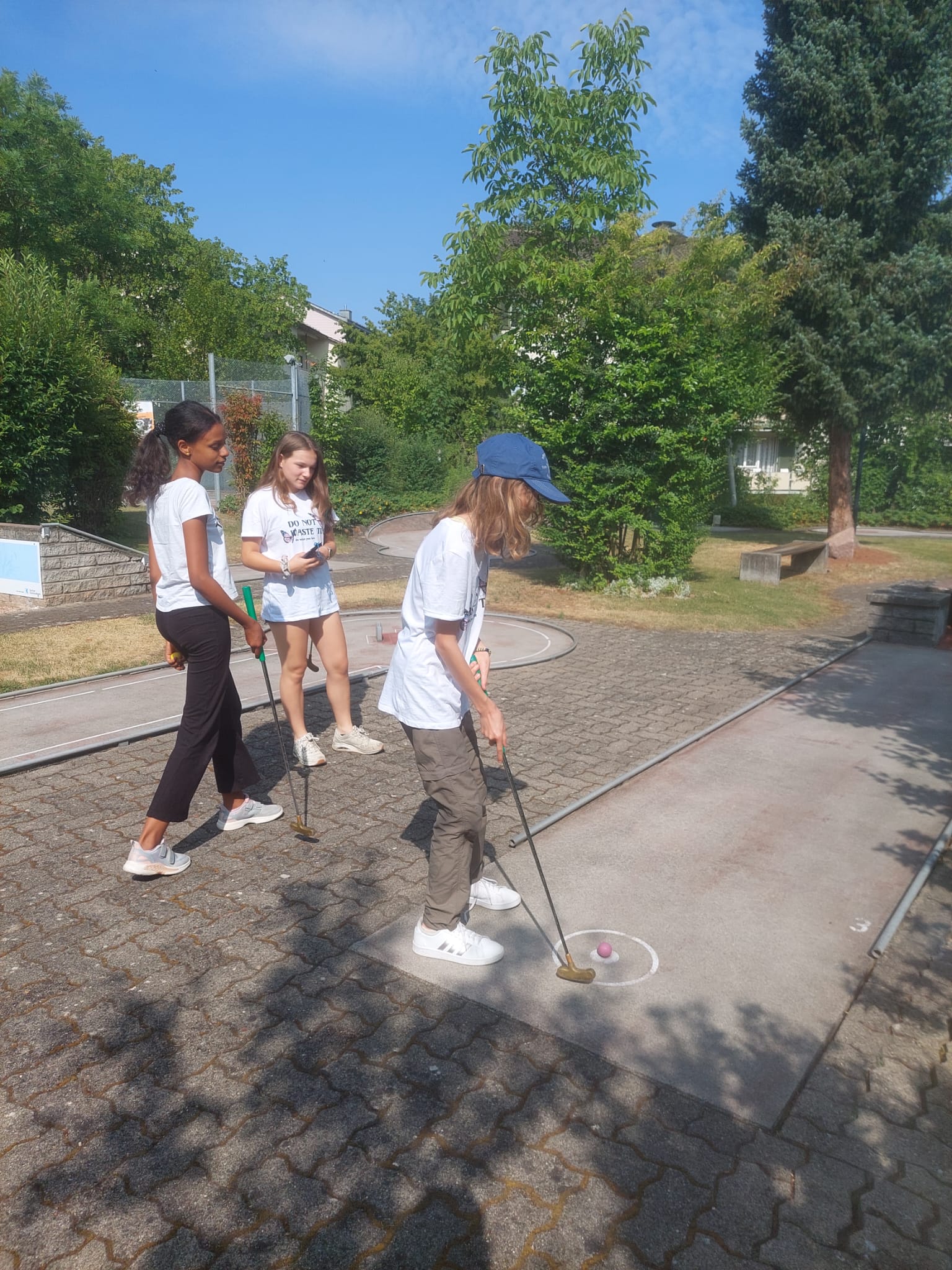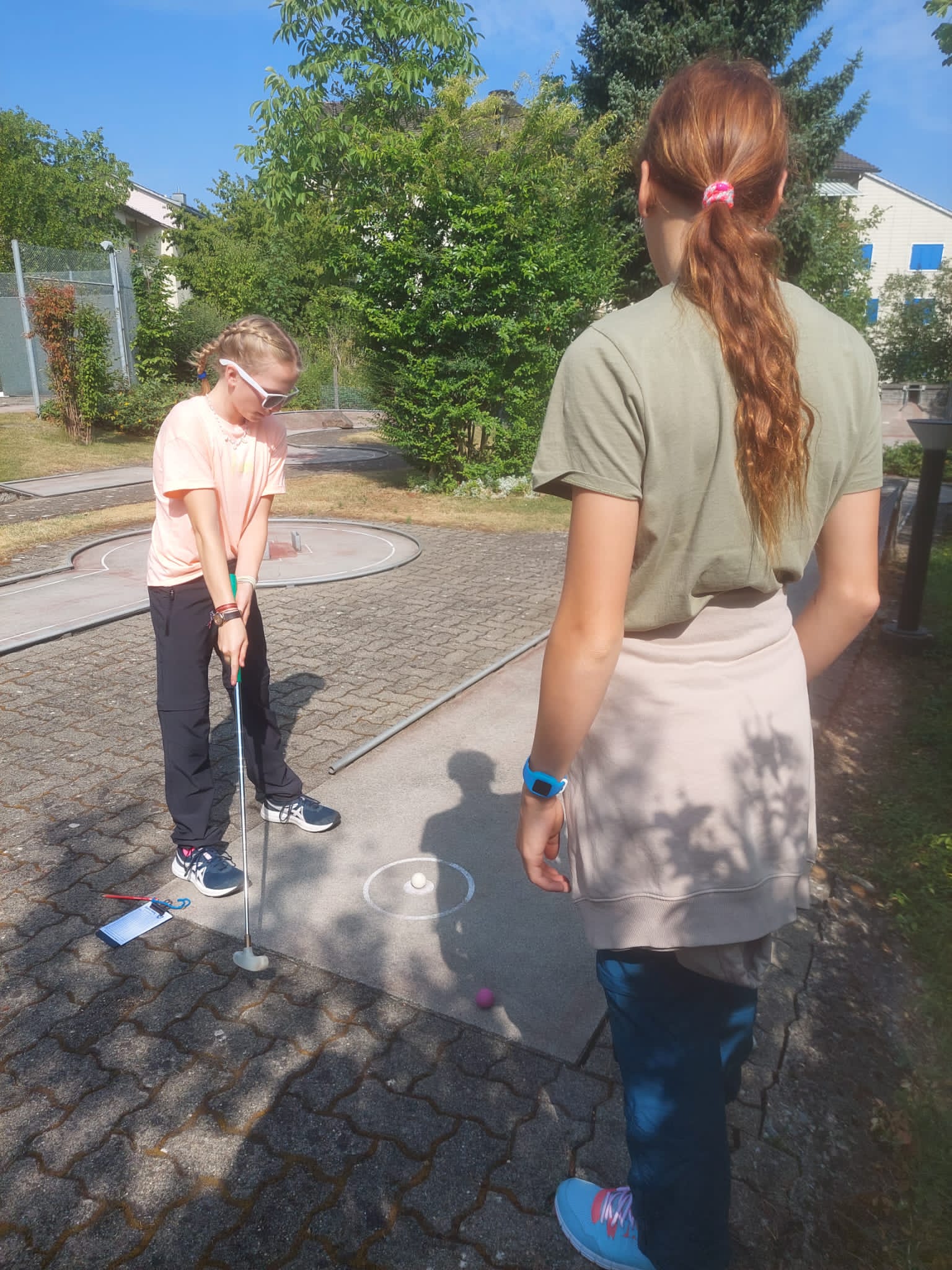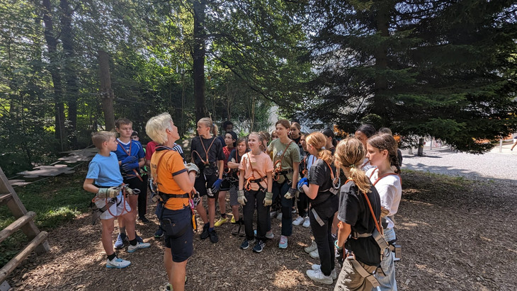 Am 29. und 30. Juni 2023 fand die Abschlussreise der Klasse 6a statt. Kurz nach 8.30 Uhr ging es für die Klasse bereits mit dem Zug nach Knoten. Den Morgen verbrachten sie auf der dortigen Minigolfanlage. Nach dem Mittagessen ging es weiter in den Seilpark Kloten. Danach quartierte sich die Klasse in der Gruppenunterkunft Letzi in Sattel/SZ ein – und natürlich durfte der Einkauf für das Frühstück am Folgetag keinesfalls fehlen! Den Abend liessen sie bei Pizza und guter Stimmung ausklingen.