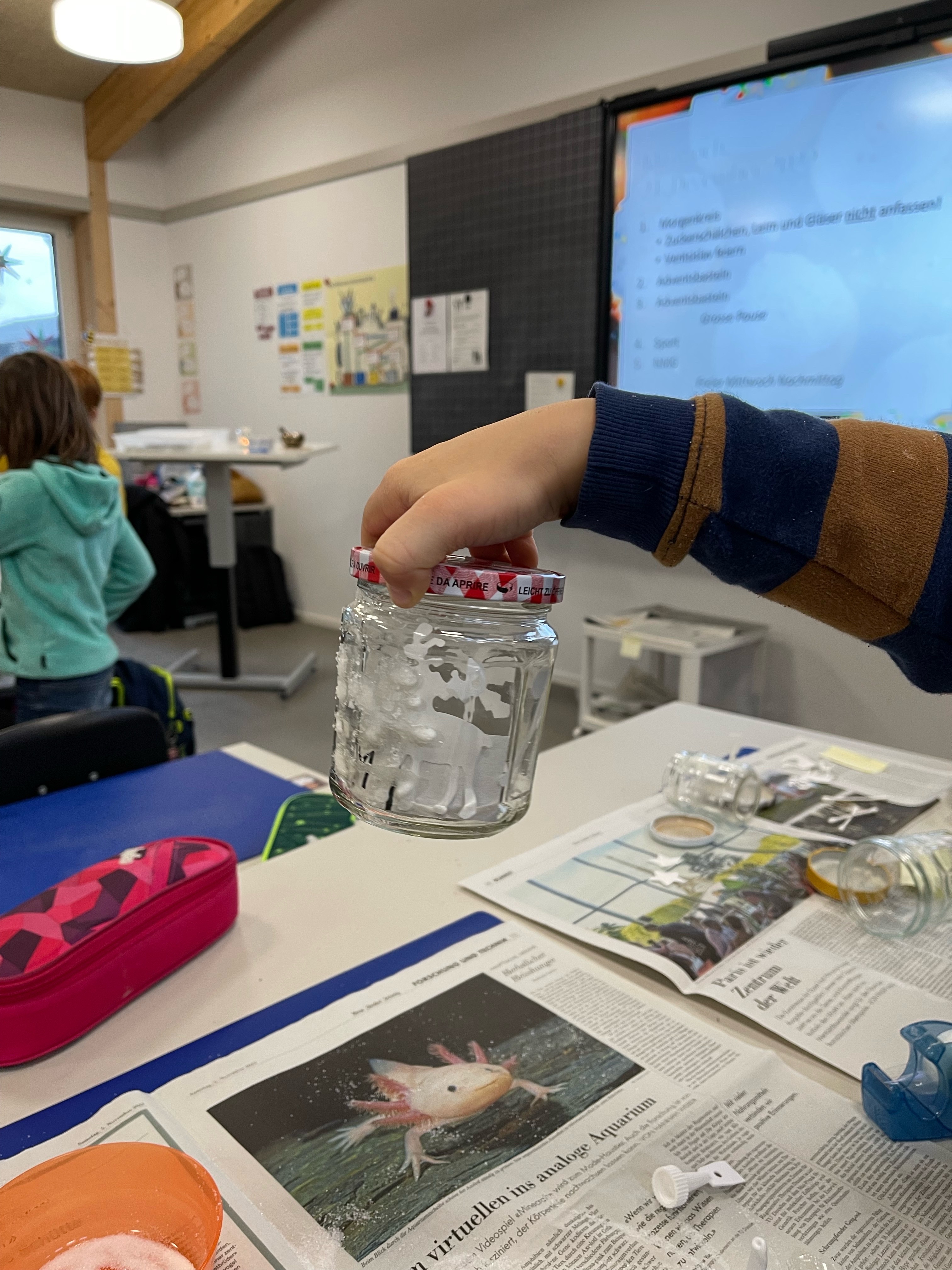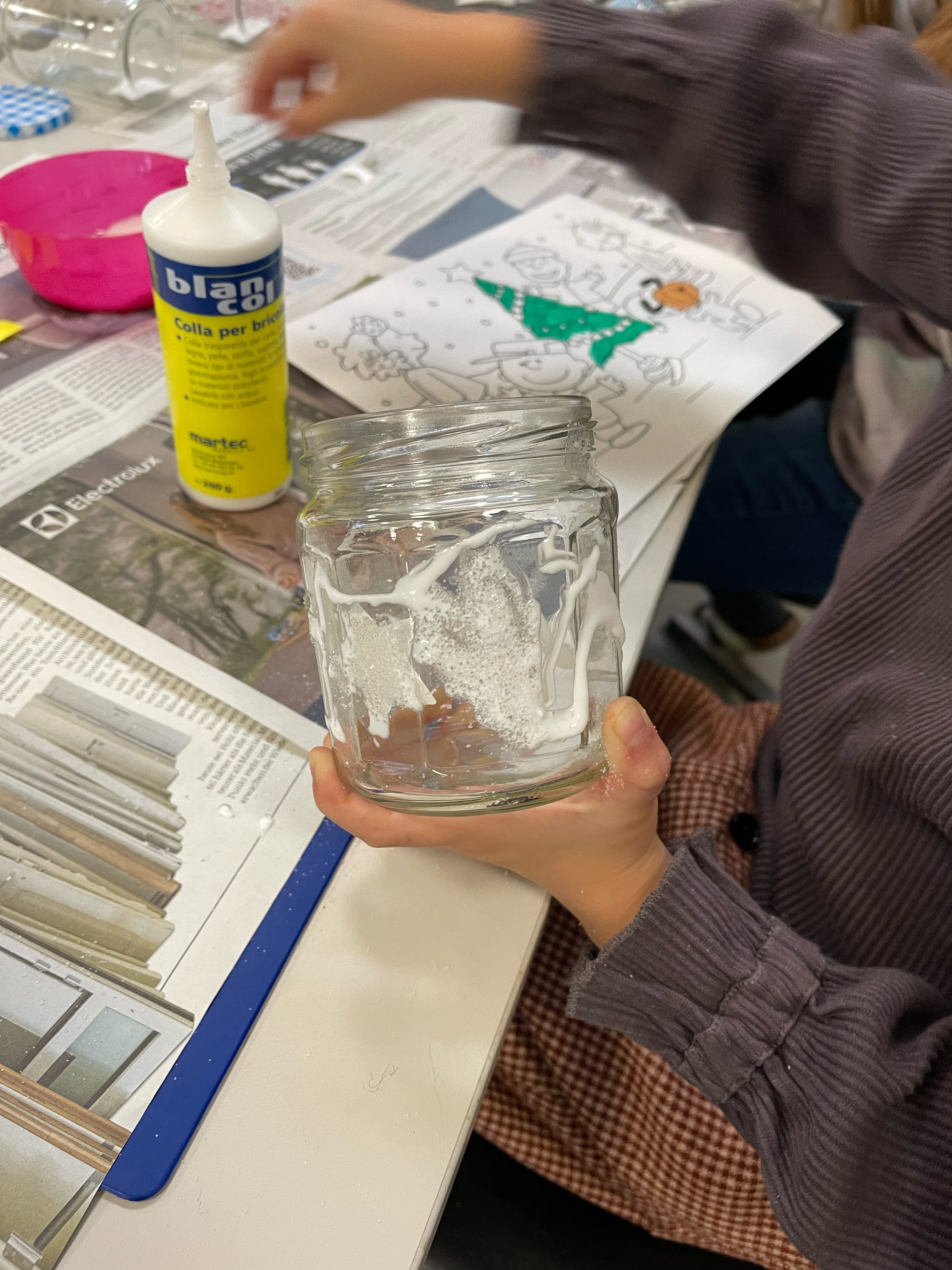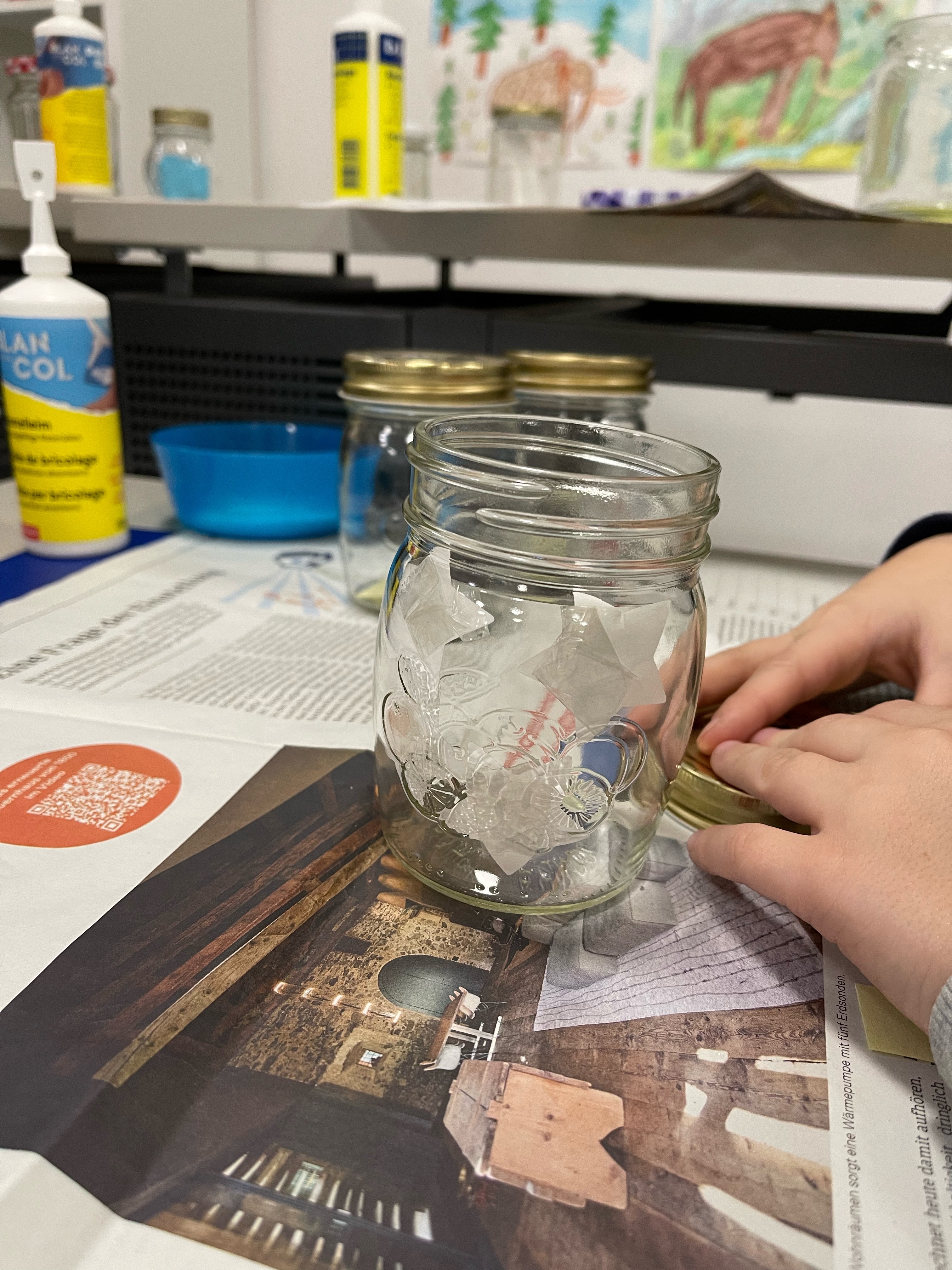 Für die beiden Klassen 1b und 4b war der Mittwochmorgen vor den Weihnachtsferien ein absolutes Highlight! In den Halbklassen aufgeteilt, stellten die Kinder Zuckergläser her, die als stimmungsvolle Windlichter genutzt werden können. Die Stimmung in den Klassenzimmern war magisch, im Hintergrund wurden leise Weihnachtslieder abgespielt. Die Kinder arbeiteten konzentriert und halfen einander. Ein wirklich gelungener Bastelmorgen in der letzten Schulwoche!