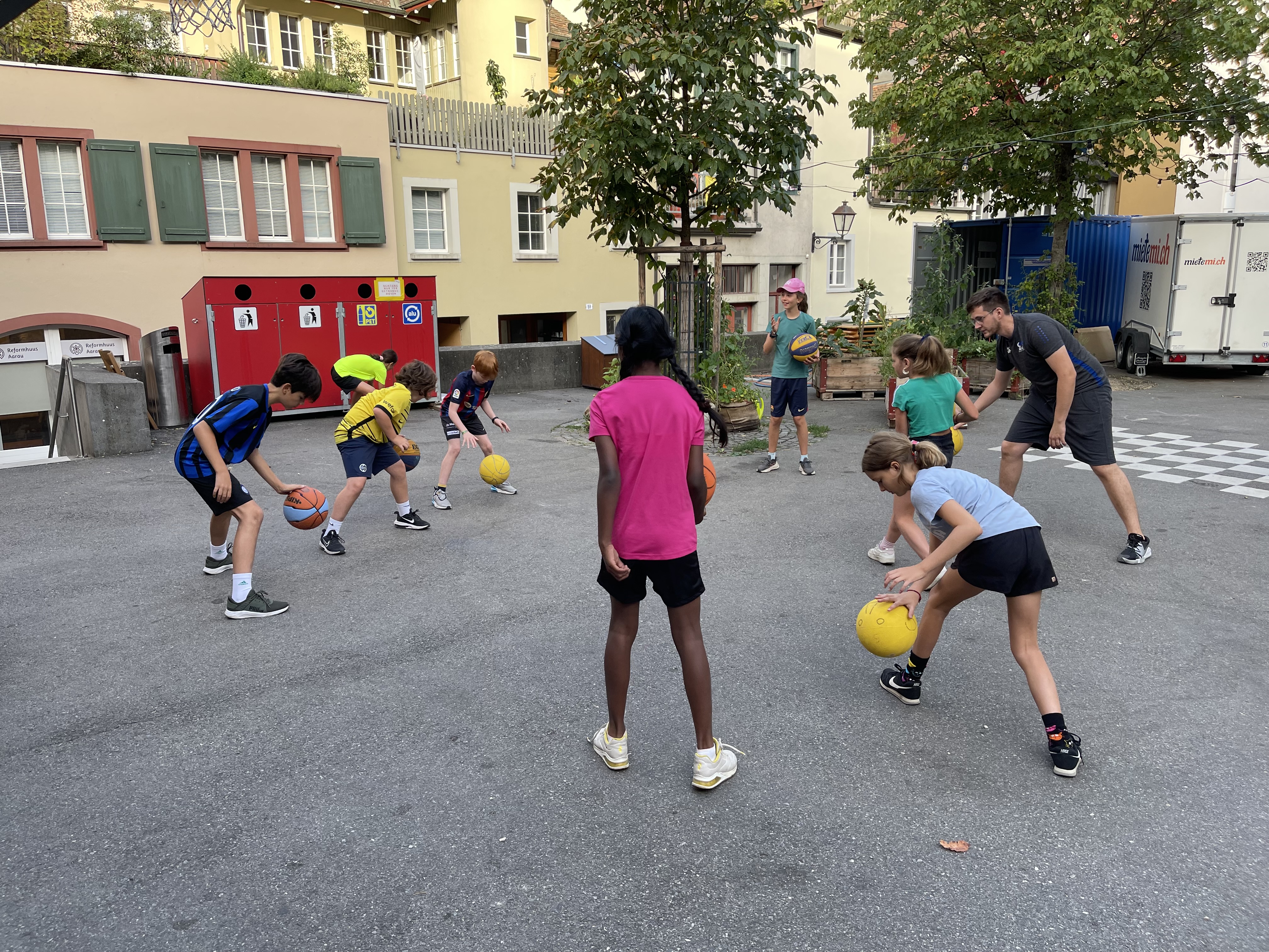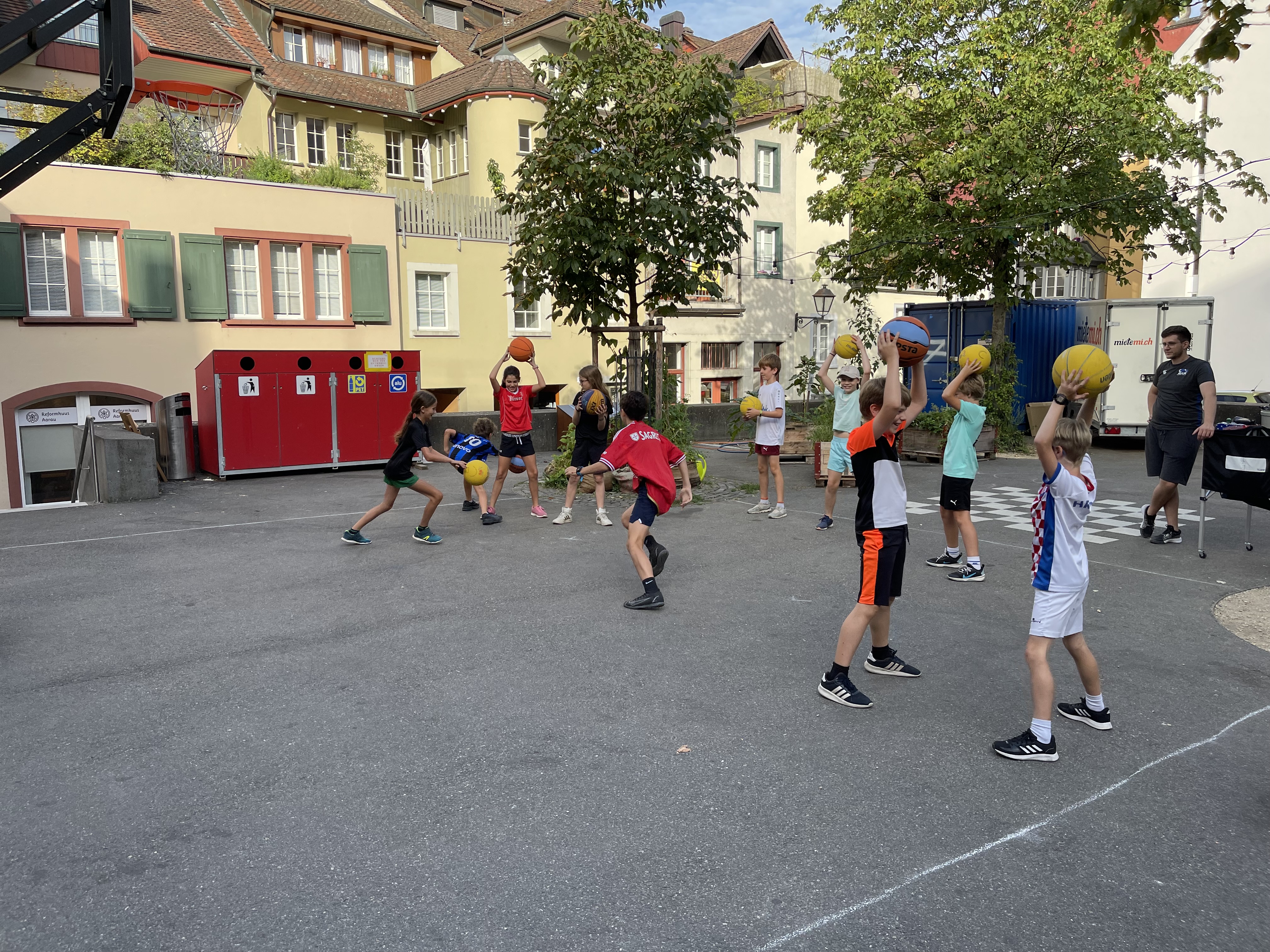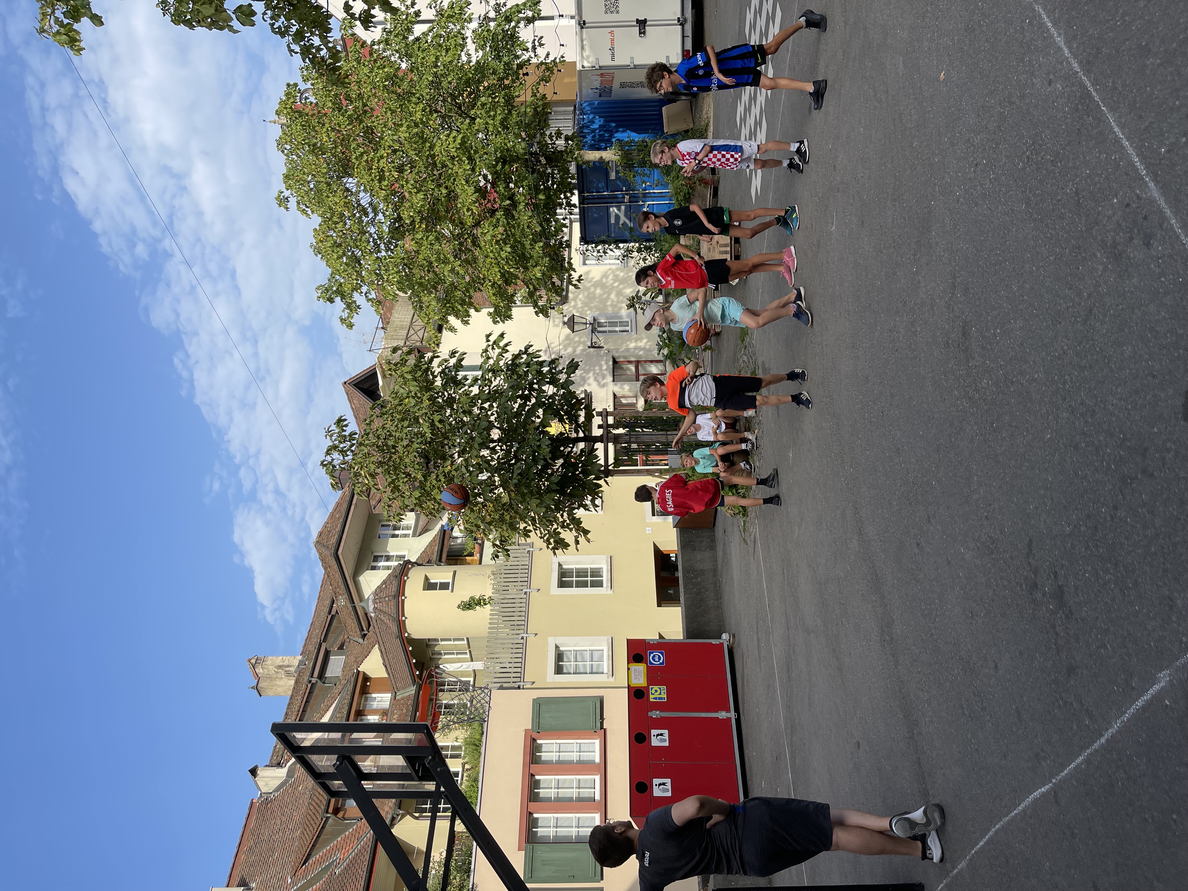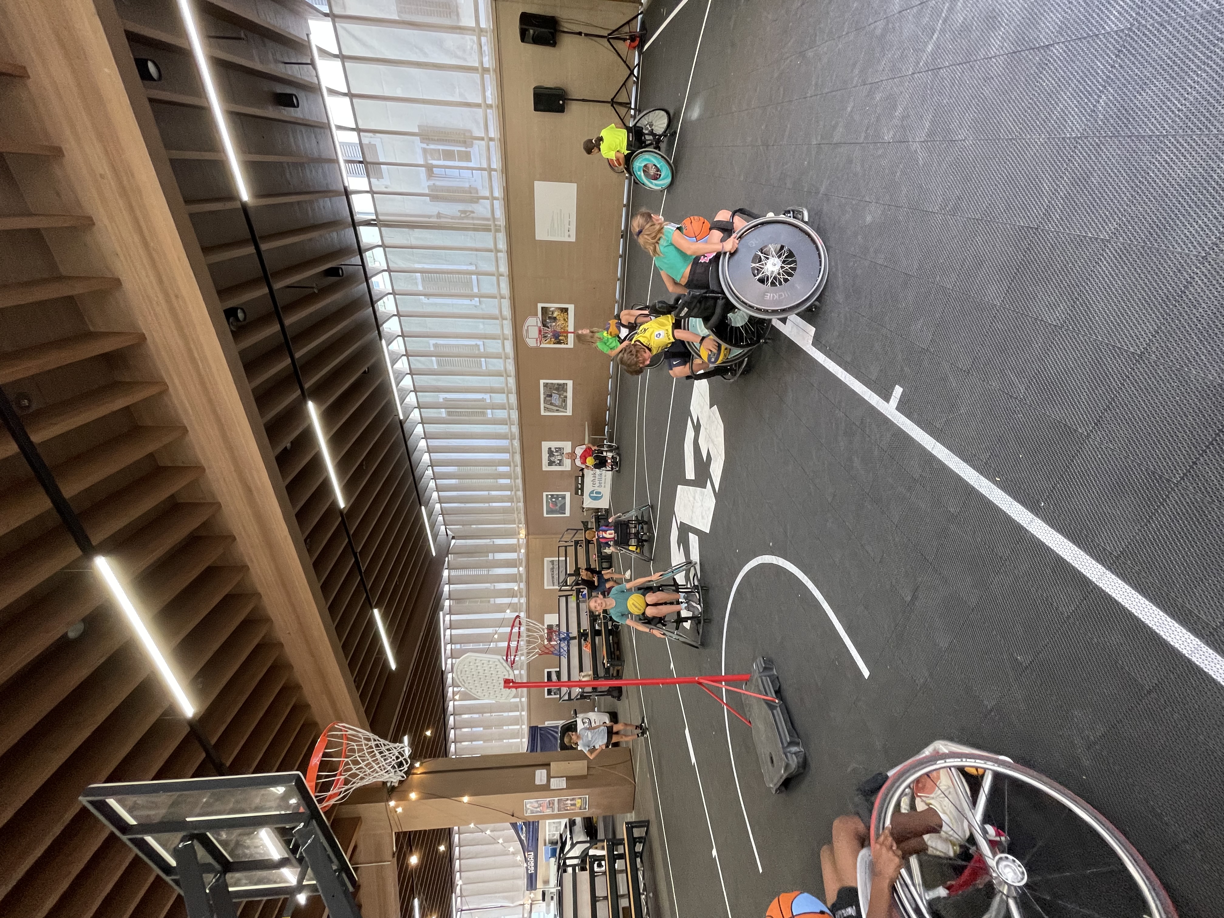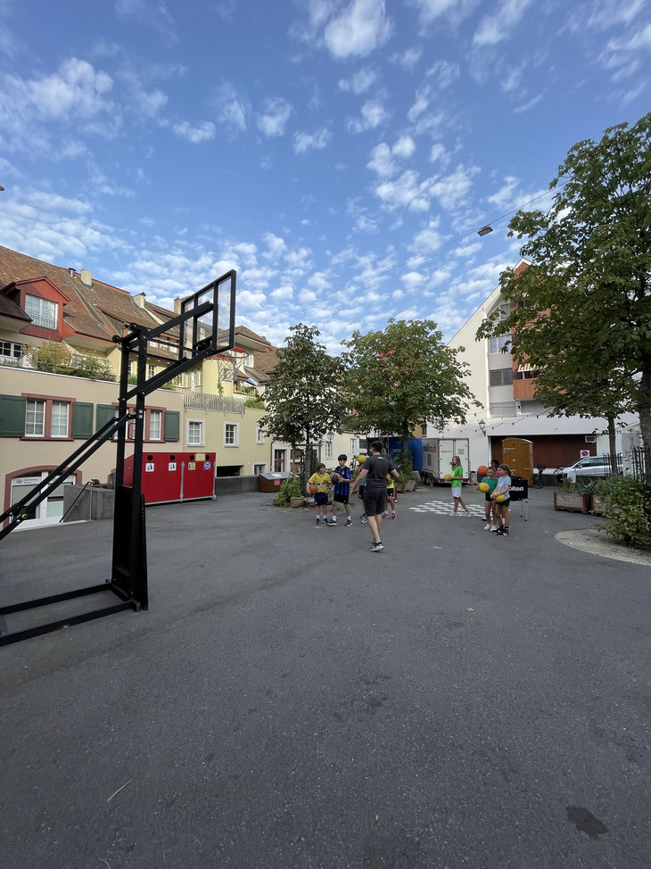 Vor Ort wurden die Kinder in zwei Gruppen aufgeteilt. Mit Mike Bhend machten die Kinder einige Übungen und spielten schlussendlich auch gegeneinander Basketball. Nicolas Hausammann zeigte den Kindern, wie im Rollstuhl Basketball gespielt wird. Er brachte Ihnen die wichtigsten Spielregeln bei, sagte aber auch, dass die Regeln für Rollstuhlbasketball nur geringfügig von den regulären Basketballregeln abweichen. Auch im Rollstuhl durften sich die Kinder am Schluss in einem Spiel versuchen.