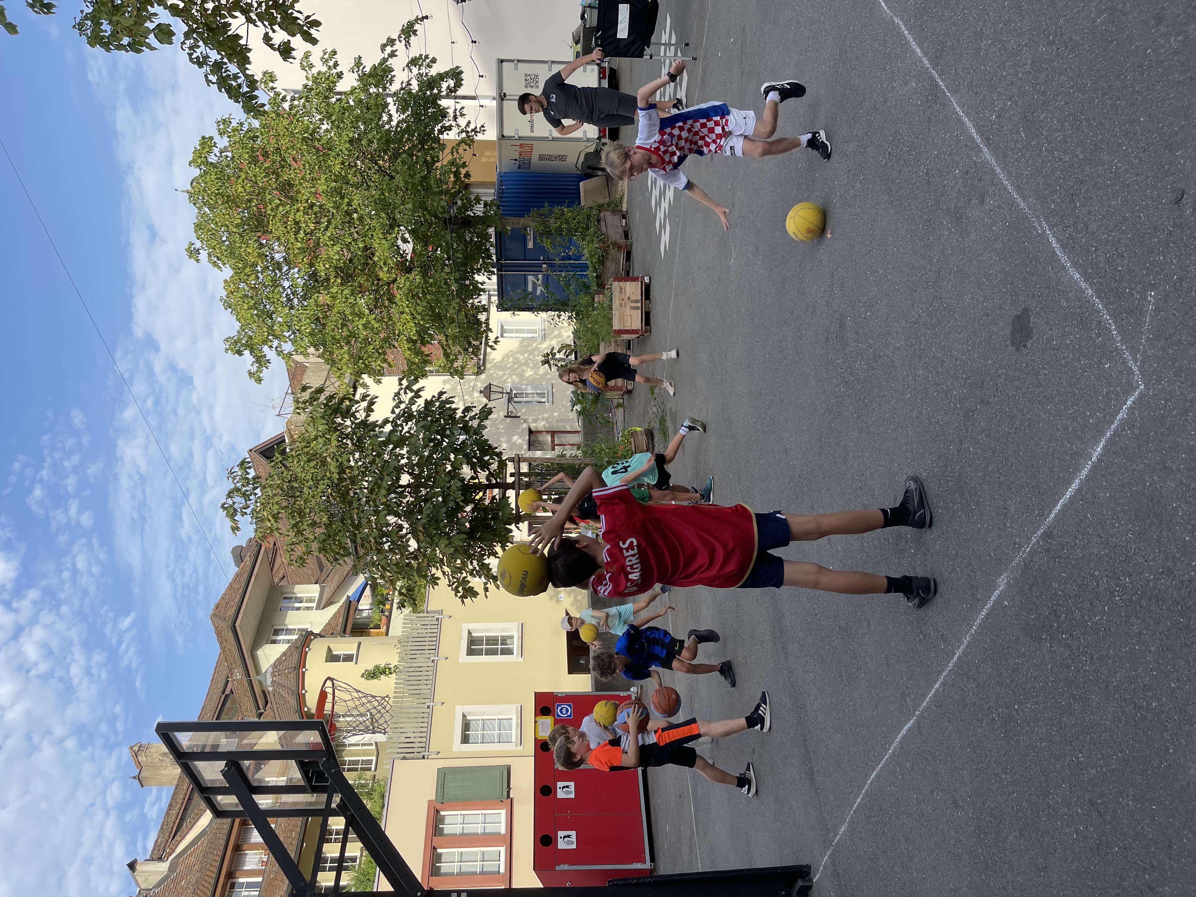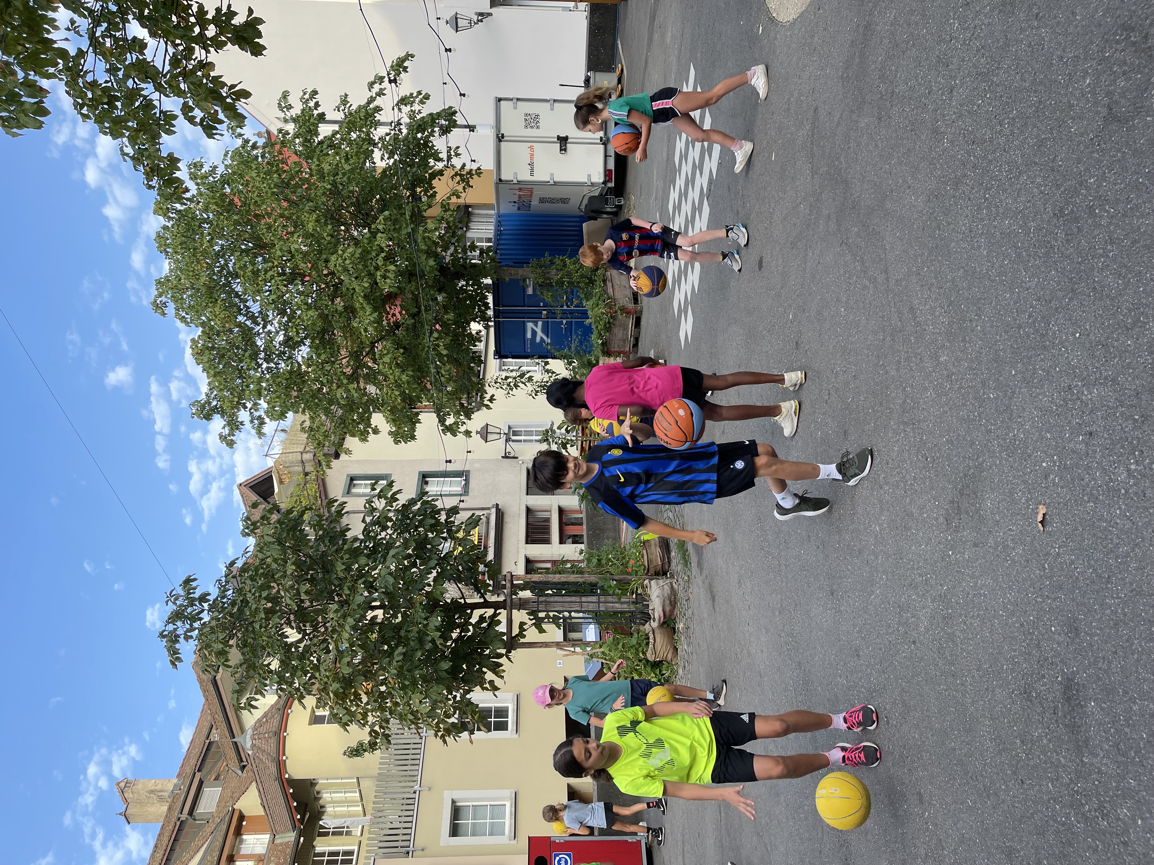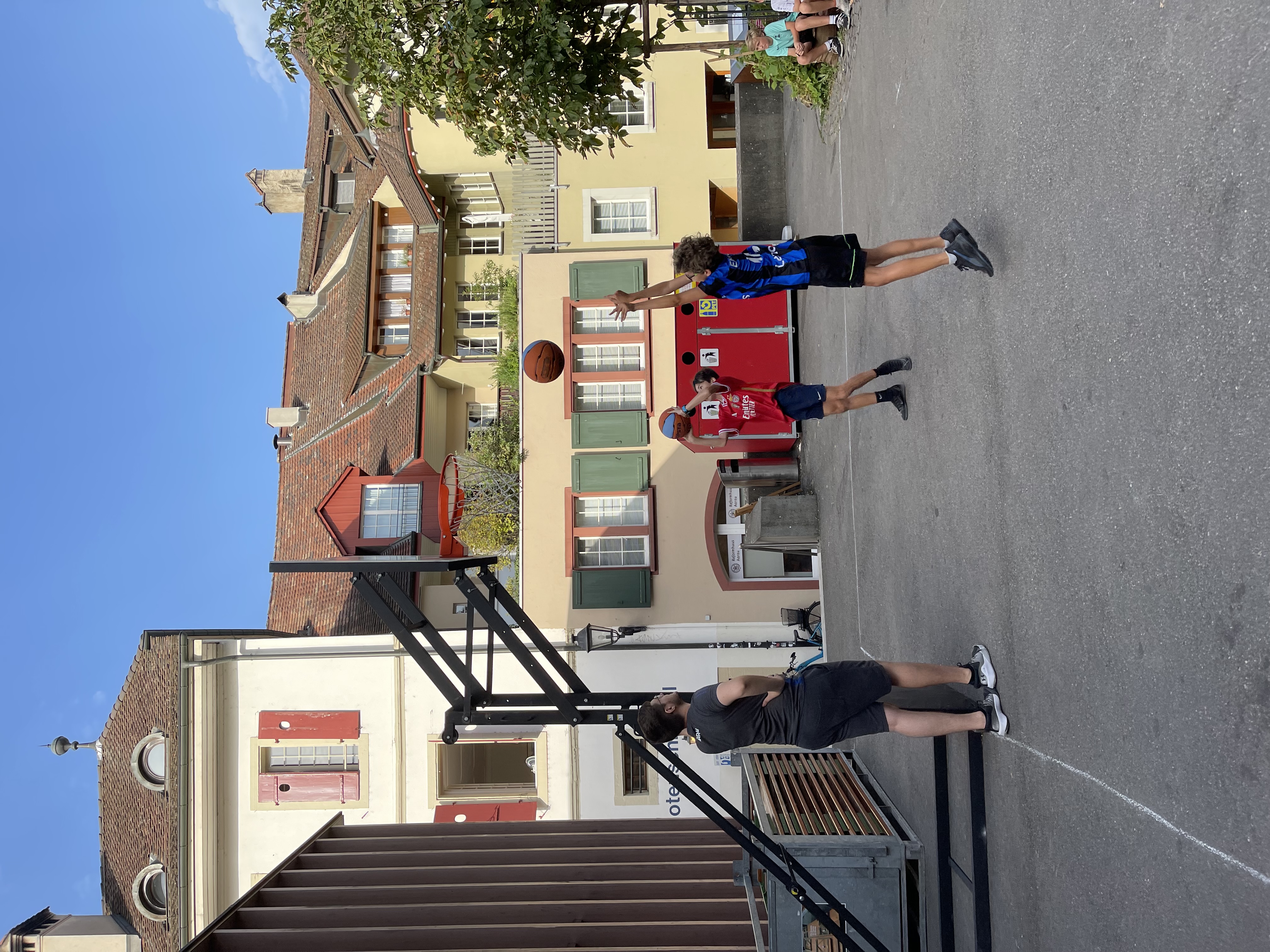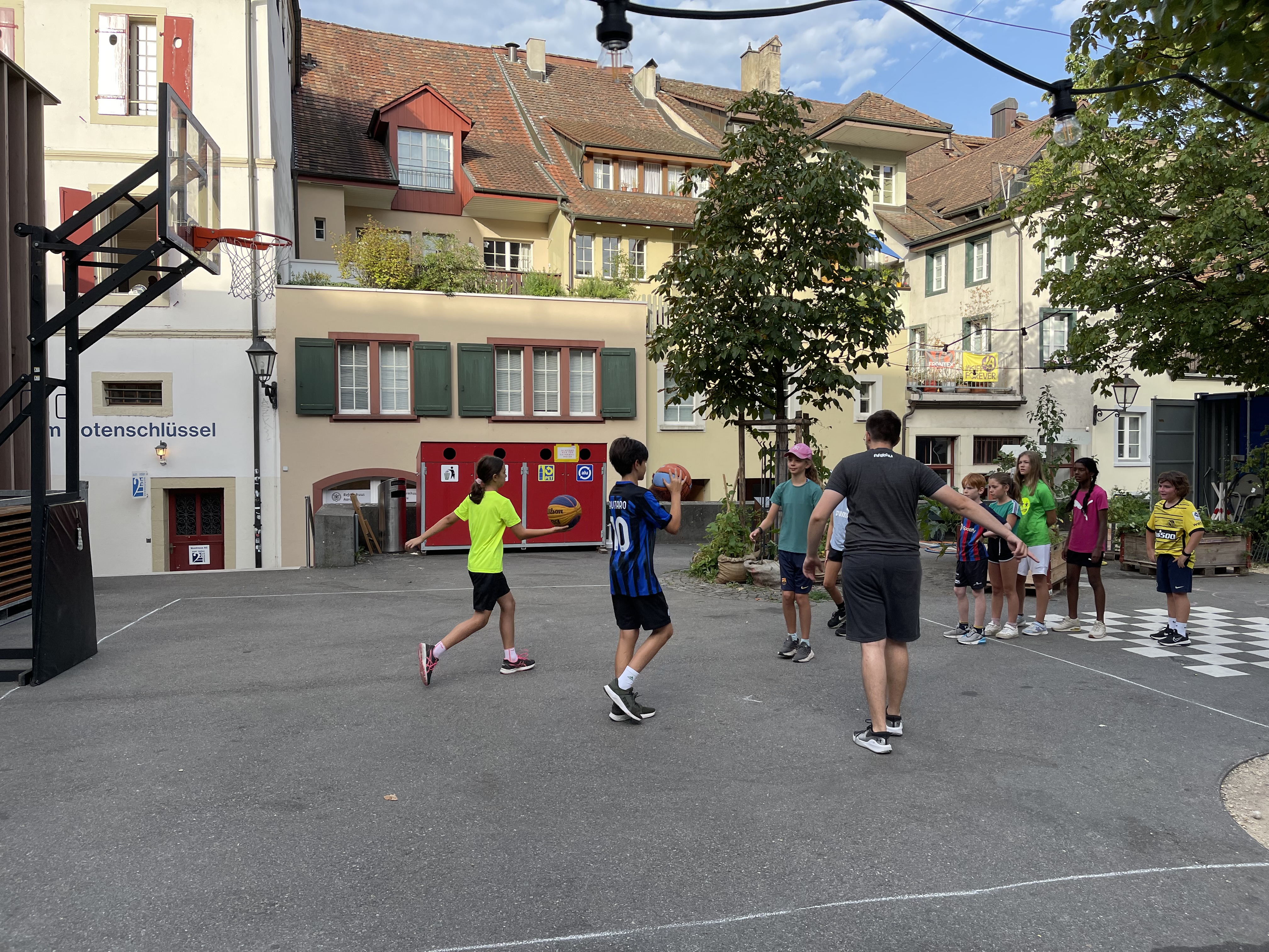 Vor Ort wurden die Kinder in zwei Gruppen aufgeteilt. Mit Mike Bhend machten die Kinder einige Übungen und spielten schlussendlich auch gegeneinander Basketball. Nicolas Hausammann zeigte den Kindern, wie im Rollstuhl Basketball gespielt wird. Er brachte Ihnen die wichtigsten Spielregeln bei, sagte aber auch, dass die Regeln für Rollstuhlbasketball nur geringfügig von den regulären Basketballregeln abweichen. Auch im Rollstuhl durften sich die Kinder am Schluss in einem Spiel versuchen.