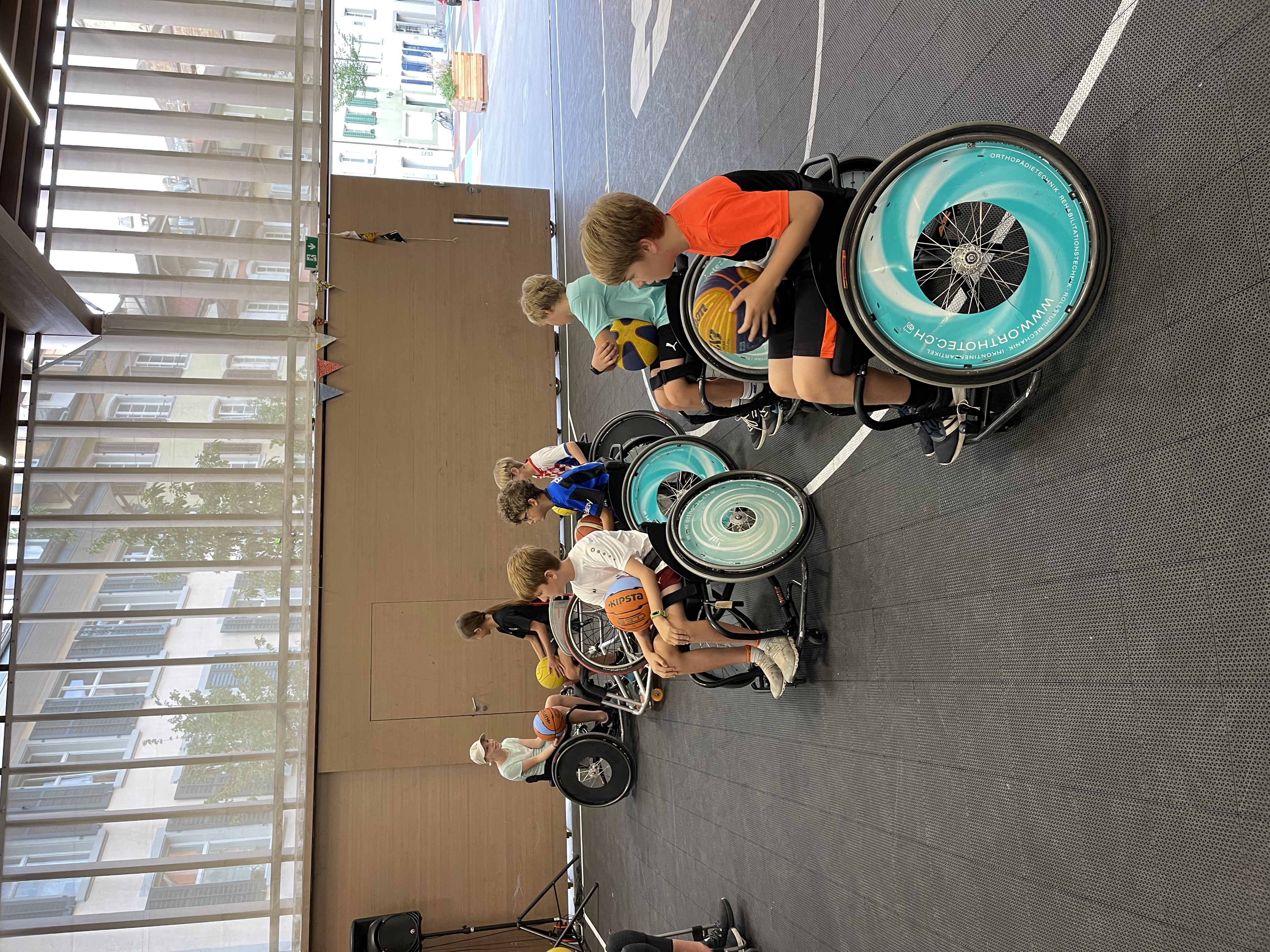 Die Kinder der Klasse 5b waren begeistert vom Rollstuhlbasketball-Workshop des Basketballclubs Alte Kanti Aarau!