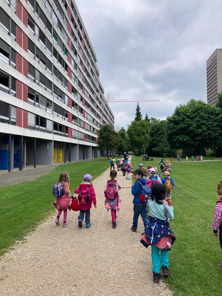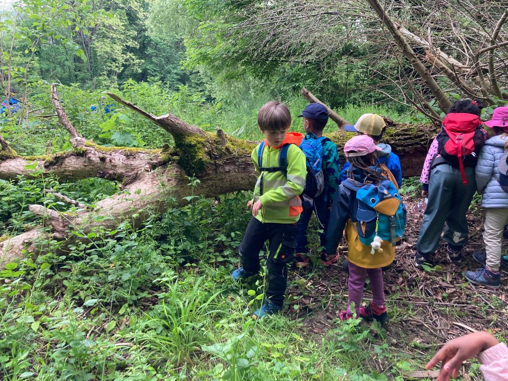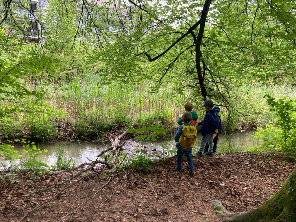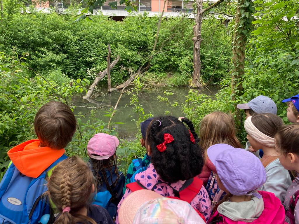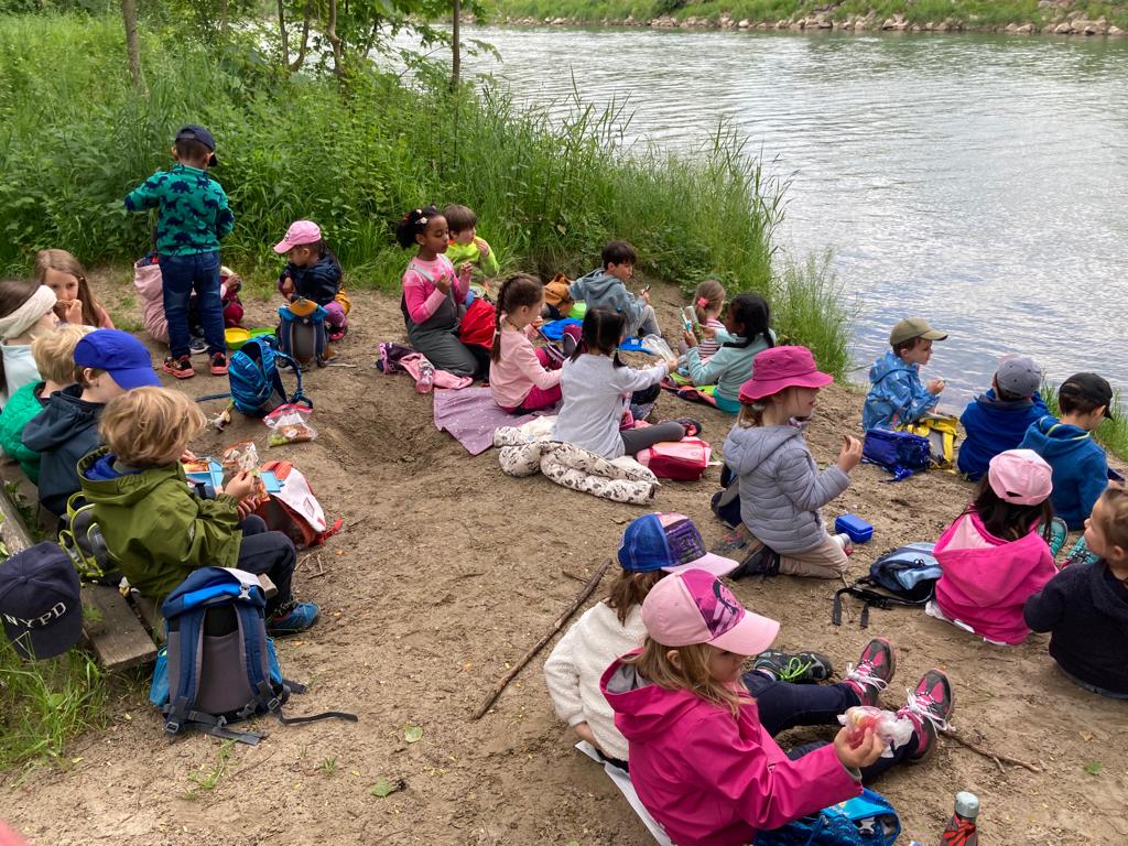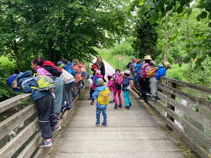 Am vergangenen Donnerstag, dem 25. Mai 2023 fand die KIGA-Reise der Göni-Kindergartenkinder statt. Mit dem Bus fuhren die Kindergärtnerinnen Rebecca Borner und Kathrina Tortoli mit der Gruppe am Morgen von der Dufourstrasse bis ins Telli. Dort angekommen lief die Gruppe dem Sengelbach entlang, wo sie bereits erste Biberspuren entdeckten. Neben Nagespuren und kleinen Biberburgen deuteten auch die Gitter um die Bäume darauf hin, dass hier in der Umgebung Biber ihr Werk treiben müssen. Um für die weitere Suche genügend Energie zu haben, wurde das Znüni direkt an der Aare gegessen.