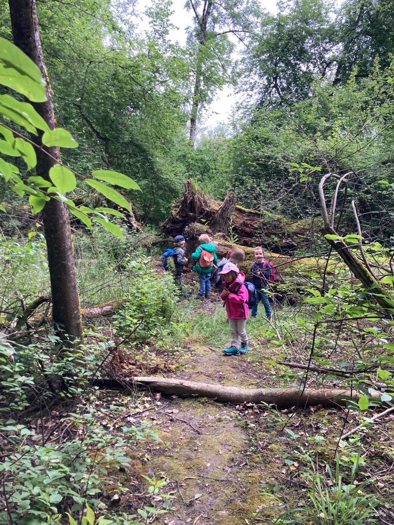 Danach ging es weiter ins «Biberland», einen Ort, an dem besonders viele Biberspuren anzutreffen waren. Für das feine Mittagessen lief die Gruppe noch ein Stück weiter durch den Wald zu einem gemütlichen Waldsofa.