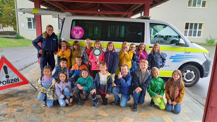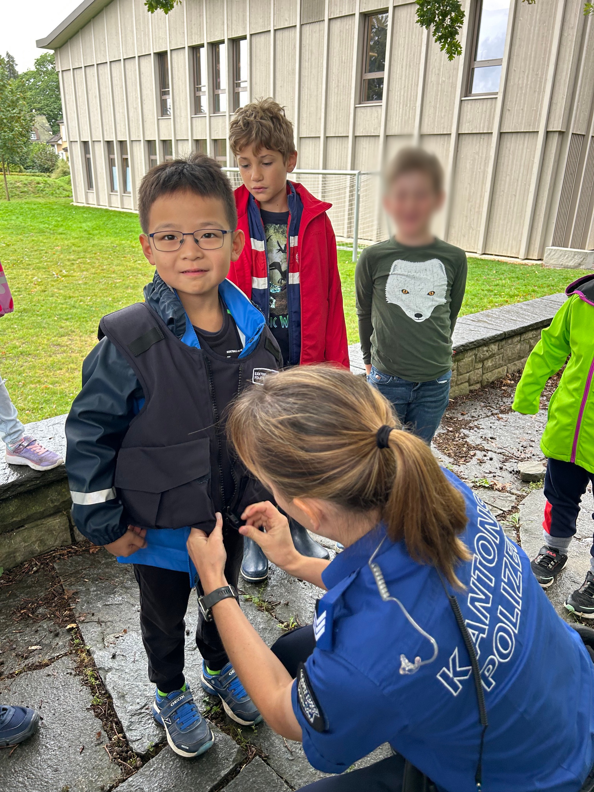 Am 28. August 2023 wurden die Schülerinnen und Schüler der 2. Klasse von der Polizei besucht. An drei verschiedenen Stationen wurde den Kindern der Beruf «Polizist*in» nähergebracht. Hier einige Eindrücke der Schülerinnen und Schüler:
