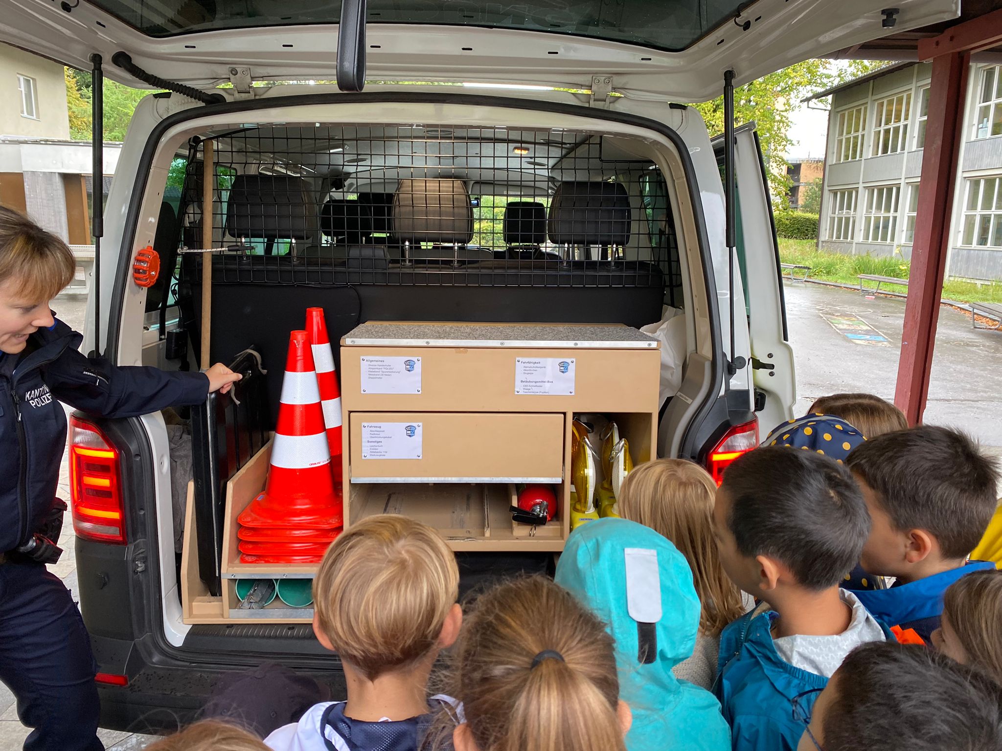Die Kinder der 2. Klasse wurden am 28. August 2023 von der Polizei besucht und erhielten einen spannenden Einblick in den Berufsalltag.