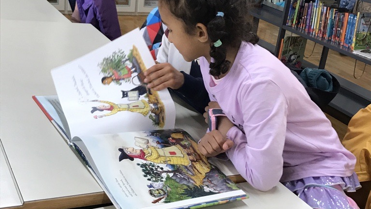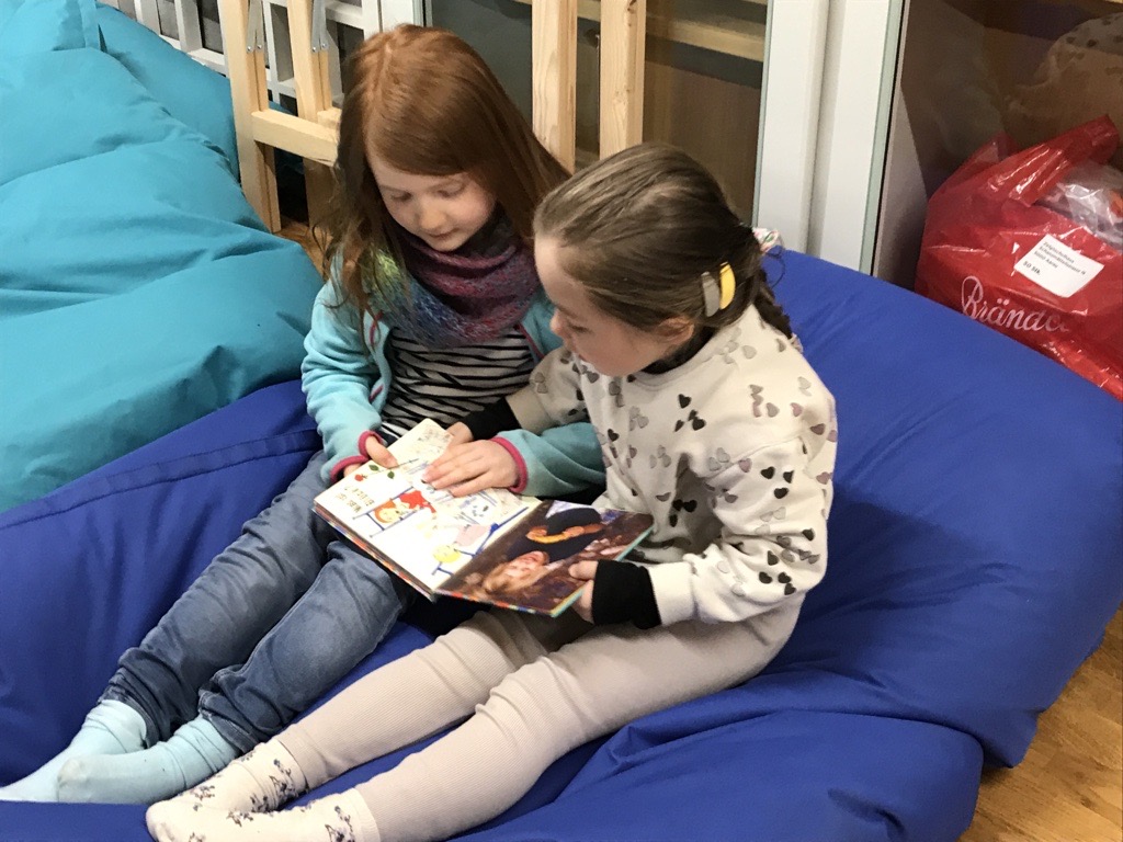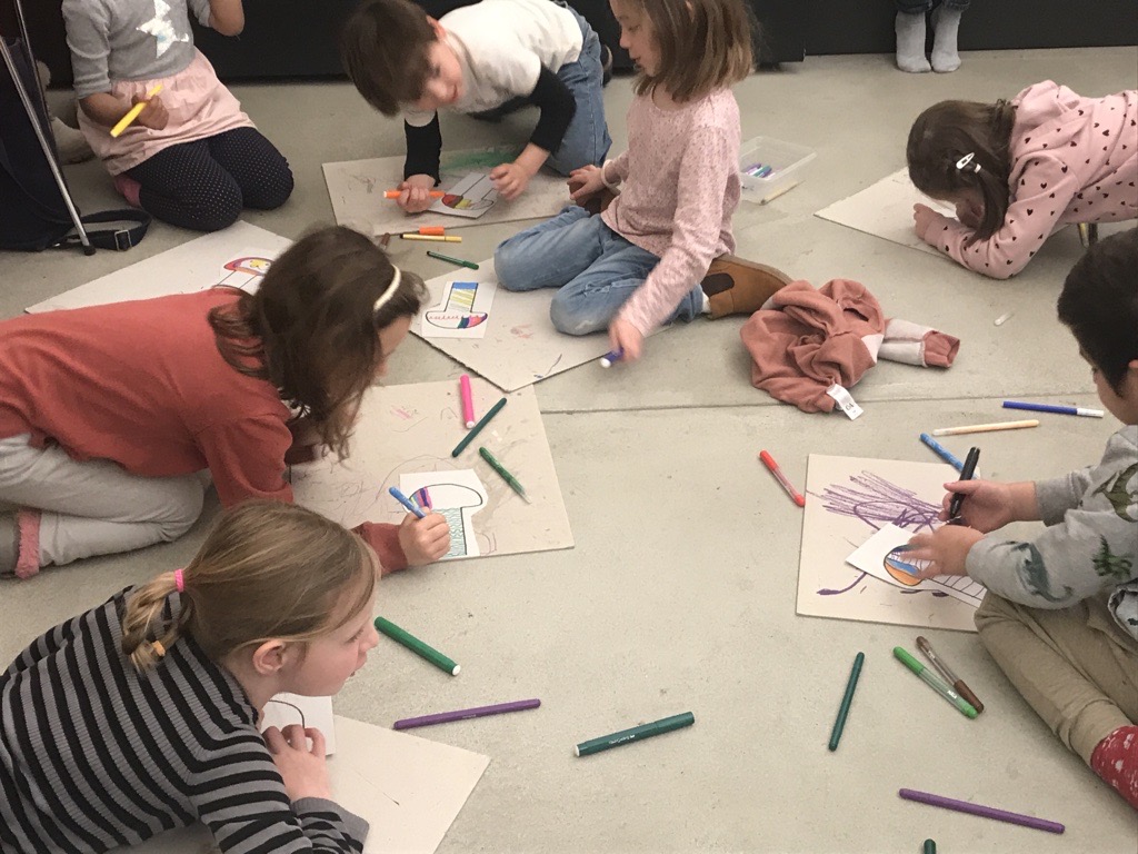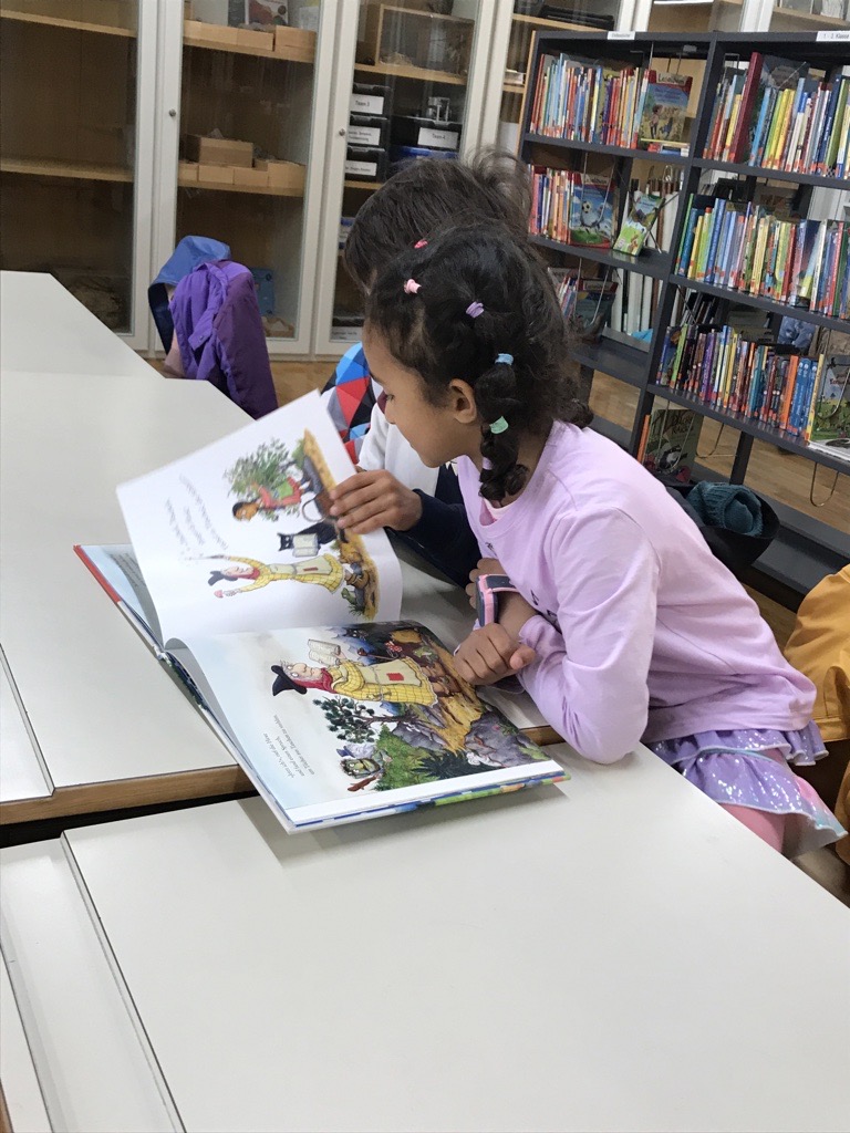 Am Mittwoch machten sie einen Ausflug in die Stadtbibliothek. Dort wurde eine Workshop zum Bilderbuch „Zwei für dich, einer für mich“ besucht. Die Geschichte wurde von Frau Dunja Böcher erzählt. Einige Fragen wurden während der Geschichte an die Kinder gestellt und mit den Kindern noch einen “Fingervers” gemacht. Als Abschluss durften die Kinder ein Buchzeichen ausmalen, ausschneiden, mit Punkten verzieren und mit nach Hause nehmen. Die Kinder durften auch weitere Bücher anschauen. Zum Schluss zeigte ihnen Frau Böcher noch den Stock mit den Kinderbüchern und erklärte, wie das Bücherausleihen funktioniert.