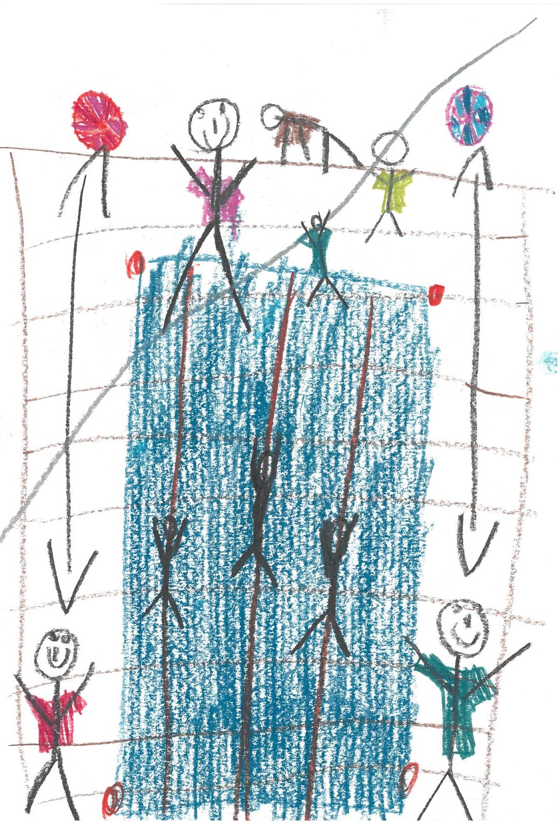 Parcours, Ringe, Klettern, Trampolin, grosse Matte zum hüpfen und mit Bällen