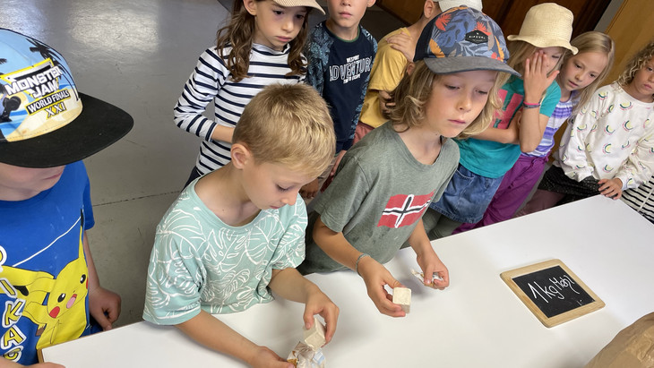 Die Klasse 2a durfte am vergangenen Dienstag mit Zug und Postauto nach Schinznach Dorf reisen und in der „mittleren Mühle“ eine Workshop besuchen.