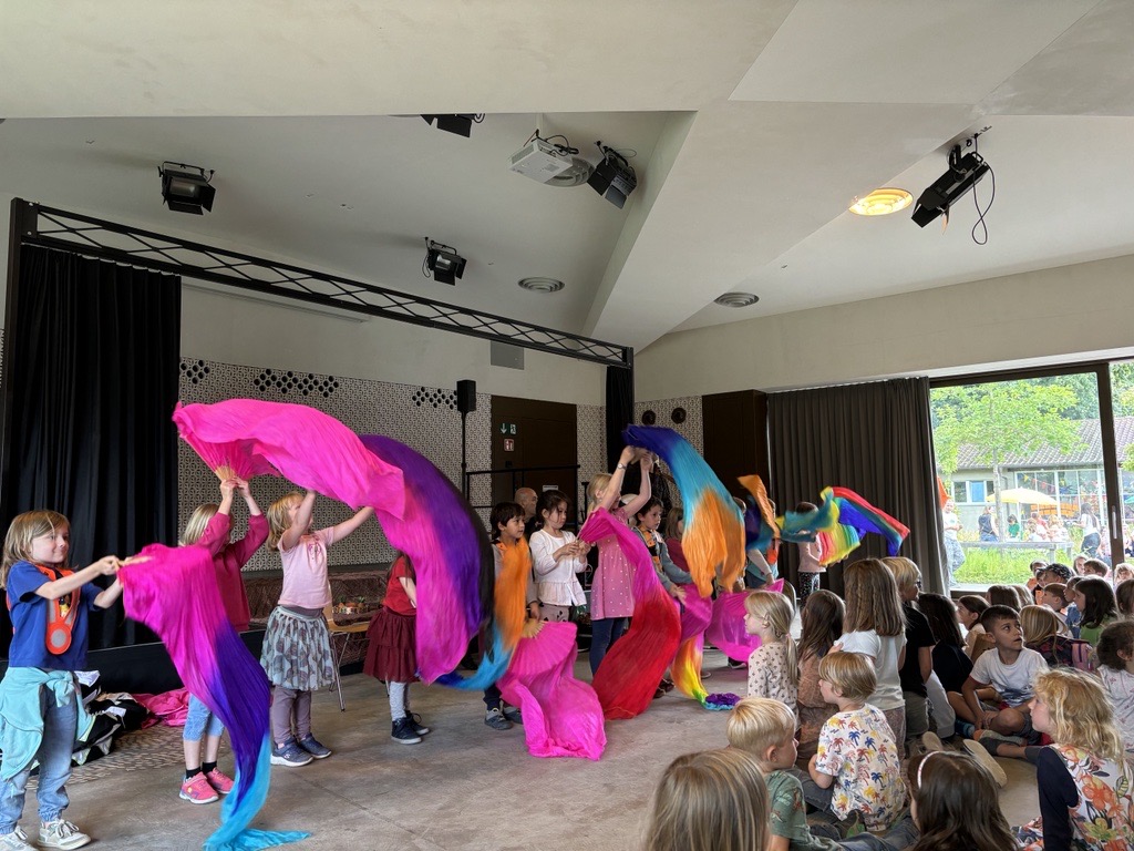 Am Donnerstagnachmittag vor dem Maienzug geniessen die grossen Kinder vom Kindergarten jeweils ein Konzert - so auch vergangen Donnerstag. Dieses Jahr war es die Band ssassa. Von traditioneller Roma-Musik, über Balkan-Pop bis zur Flamenco-Show war alles dabei. Die Kinder wurden animiert zum Mittanzen, -musizieren und singen.