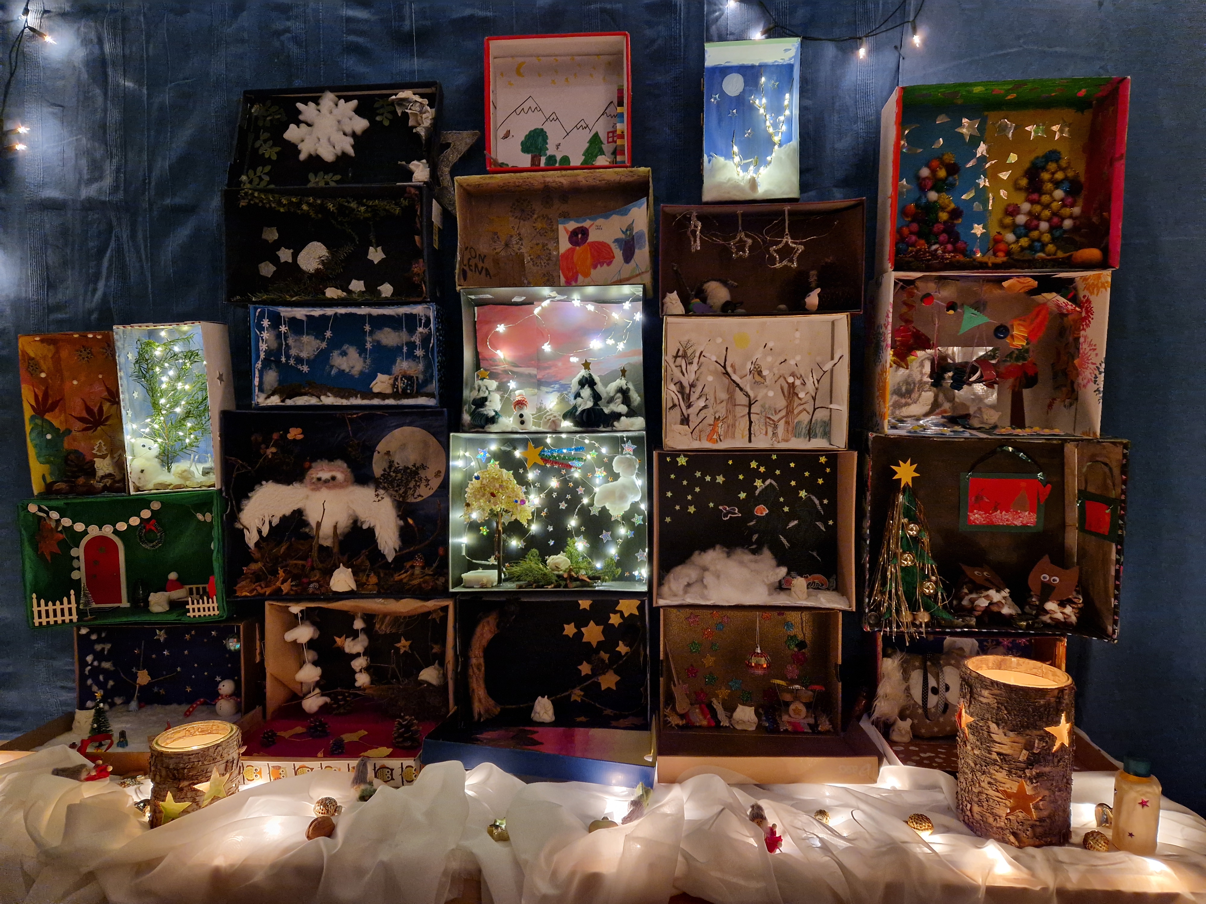Im Kindergarten Binzenhof 3 wurden die Eltern eingeladen, gemeinsam mit ihren Kindern eine Adventsschachtel zu gestalten. Inspiriert von der kleinen Eule Ellie, die zu Besuch war, entstand die Idee, eine kleine Welt für Eulen zu kreieren. Jede Schachtel wurde individuell und mit viel Liebe gestaltet. Täglich wurden ein bis zwei Schachteln geöffnet, die stolz vom jeweiligen Kind präsentiert wurde. Der Moment, in dem die anderen Kinder die Schachteln zum ersten Mal betrachten durften, war magisch. Eine gespannte Stille erfüllte den Raum, und das Staunen in den Kinderaugen sprach mehr als tausend Worte. Auch Eltern nutzten die Gelegenheit, den besonderen Schachteln-Adventskalender zu bewundern – ein kreatives und berührendes Gemeinschaftserlebnis.