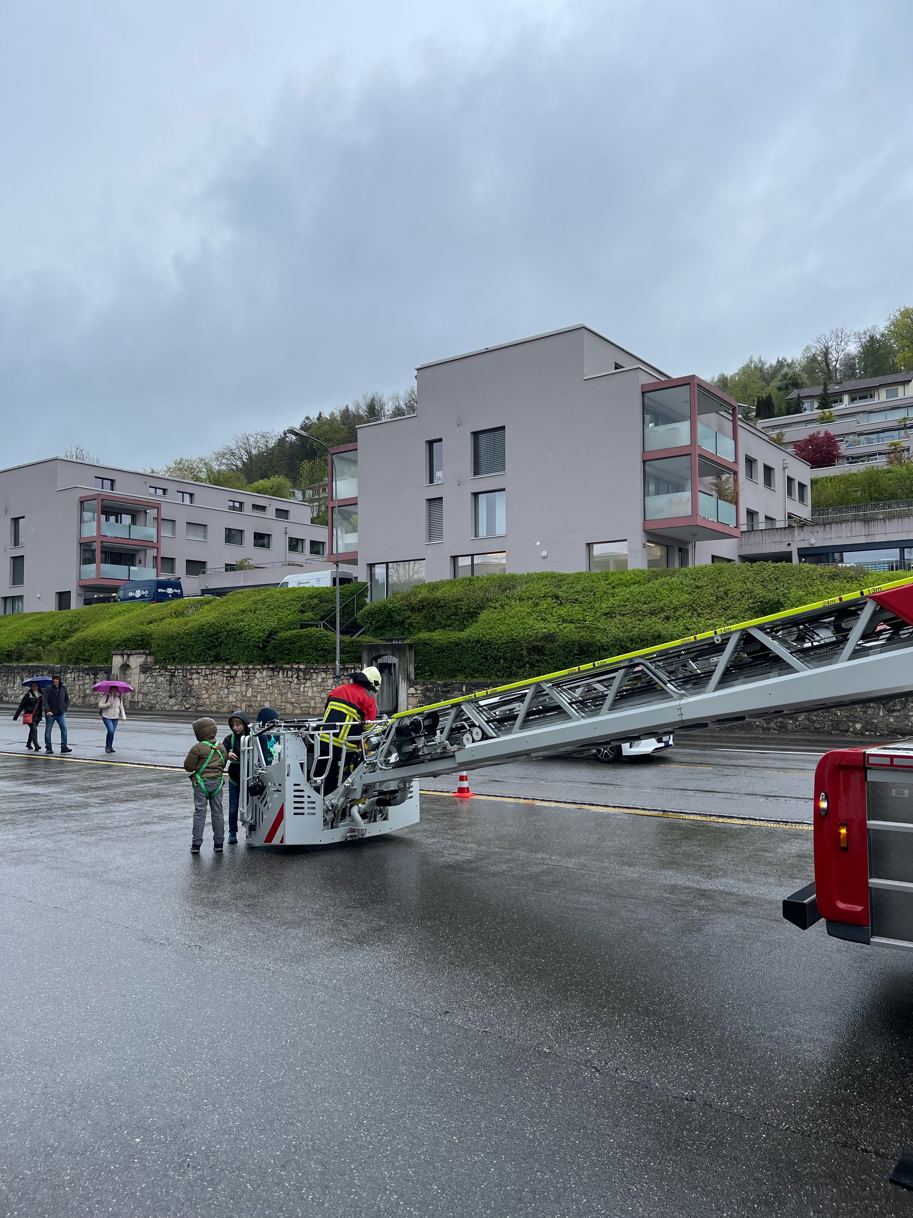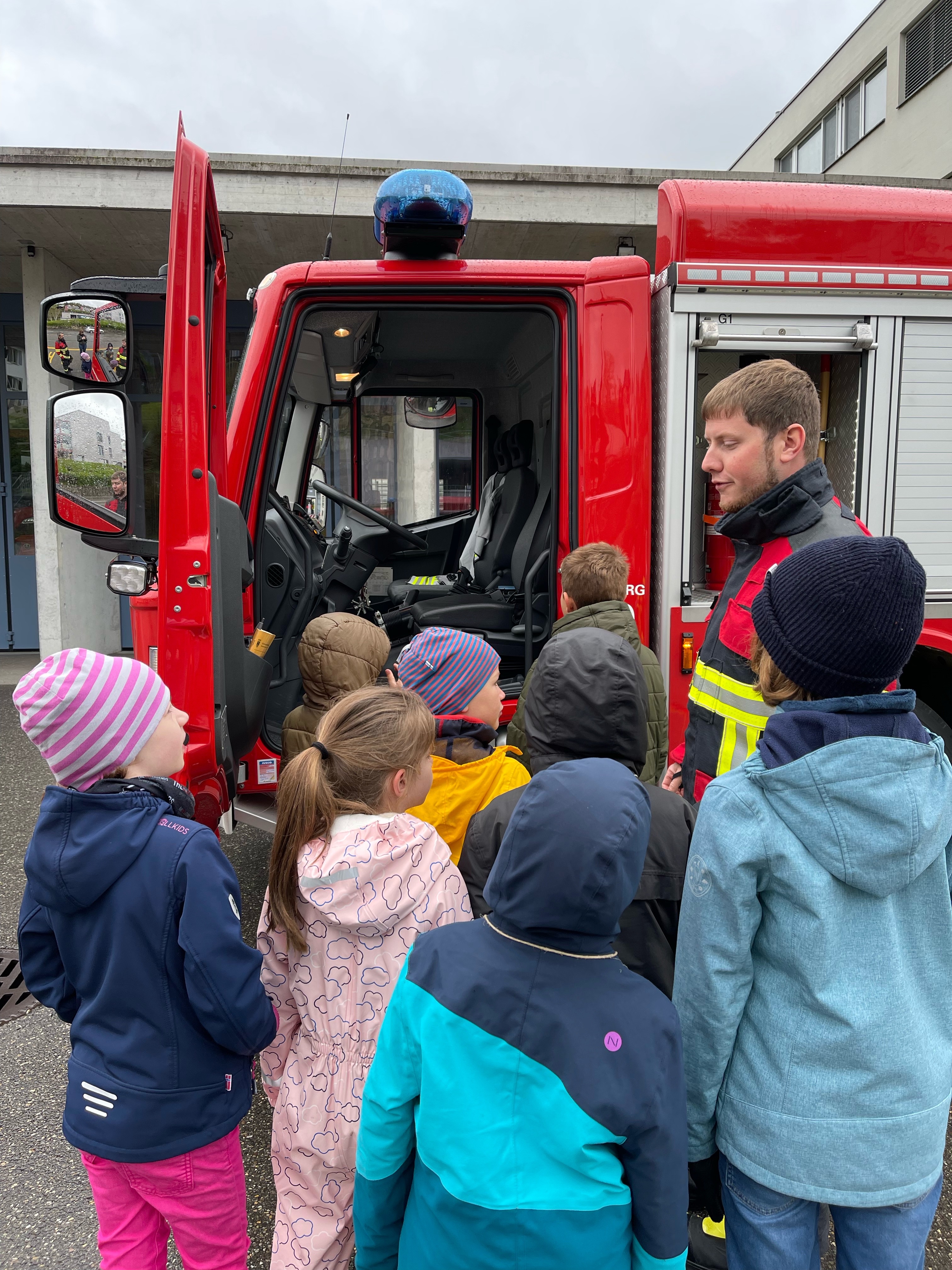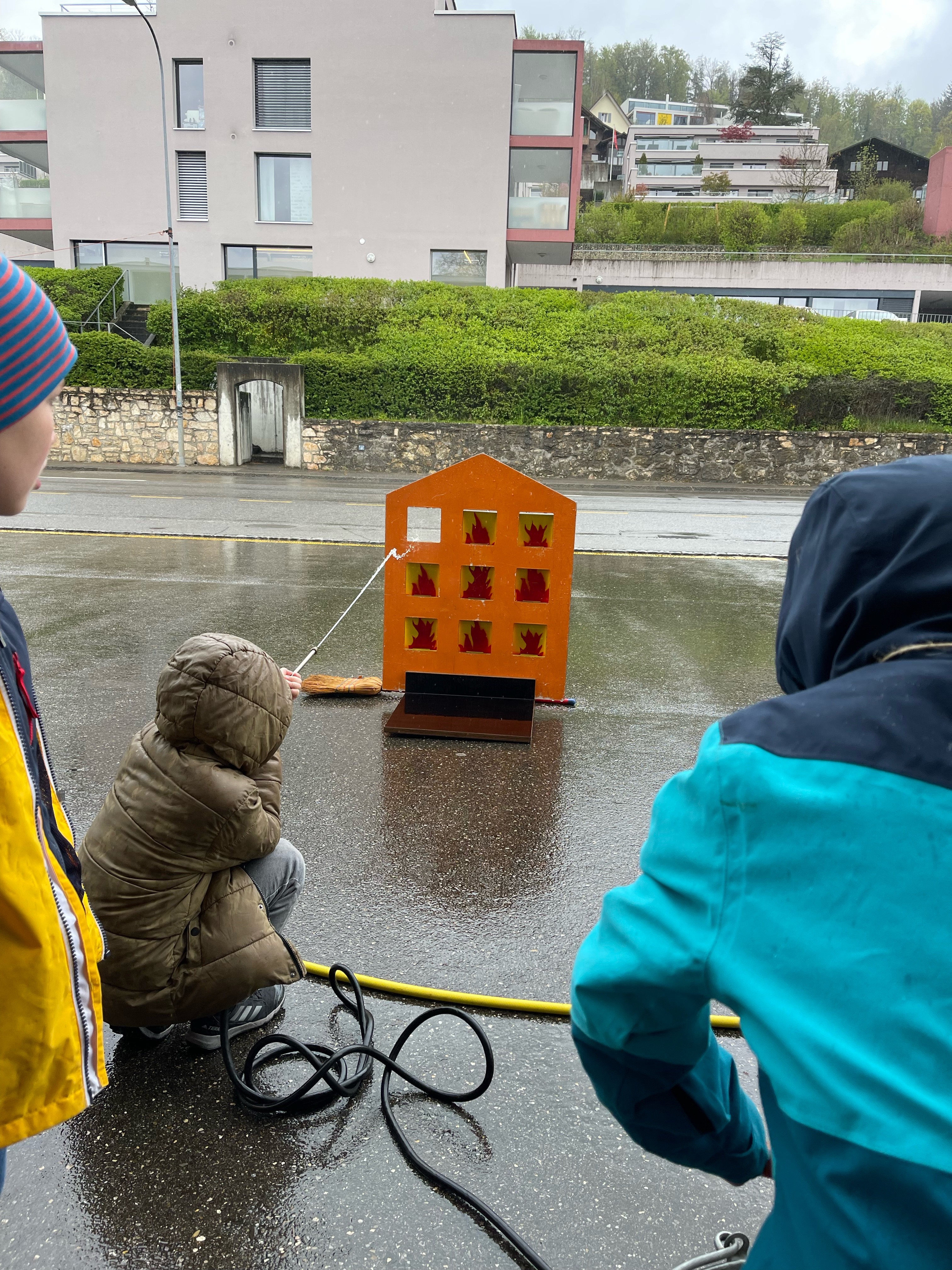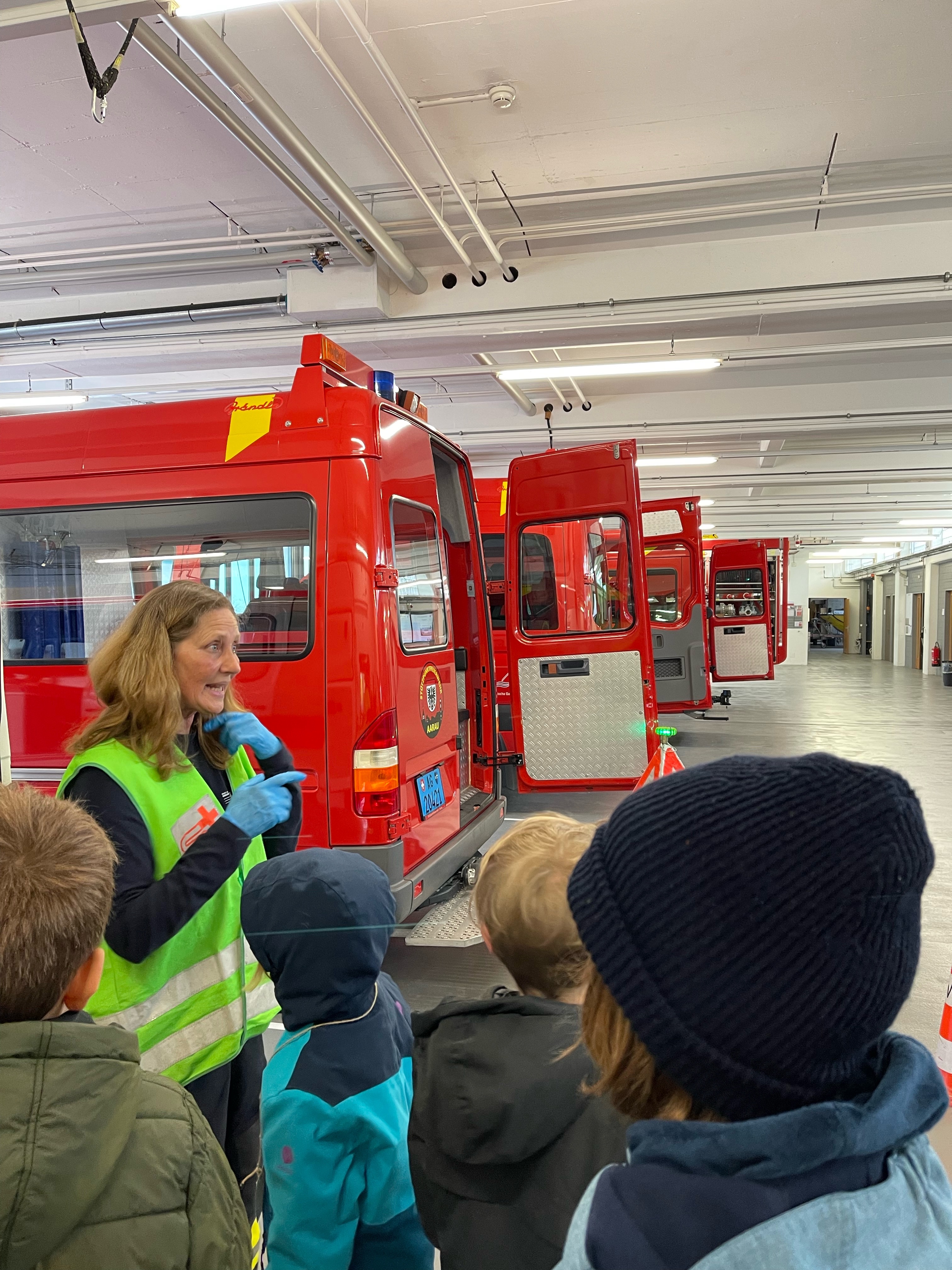 In der Themenwoche "Berufe erleben mit Spass!" lernten die Kinder verschiedene Berufe kennen. Um die Arbeit in der Feuerwehr besser kennen zu lernen, besuchte die Gruppe die Feuerwehr Aarau am Dienstag, 25. April. Die Kinder durften an vier Posten verschiedene Übungen absolvieren, was ihnen riesige Freude bereitete.