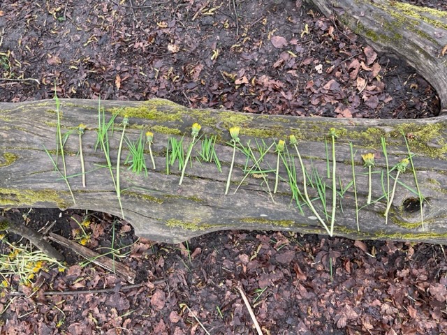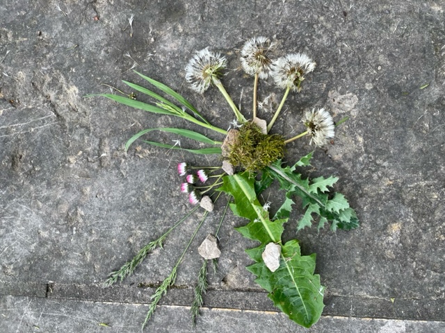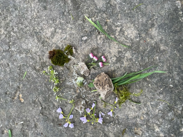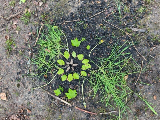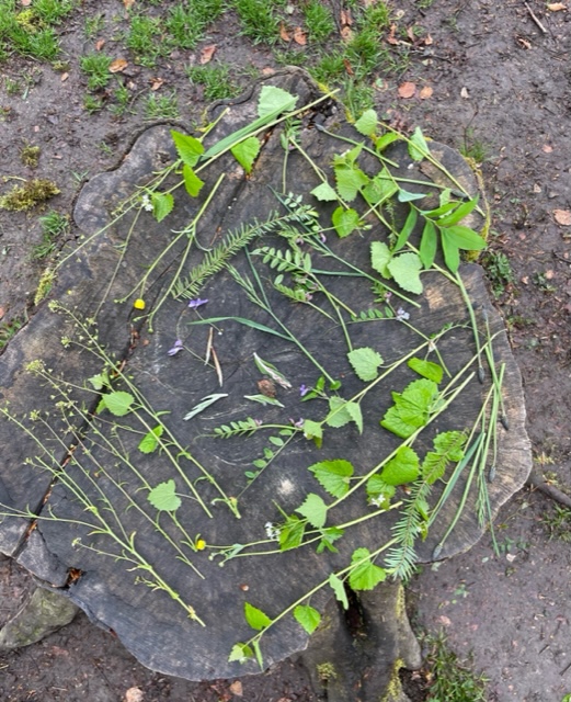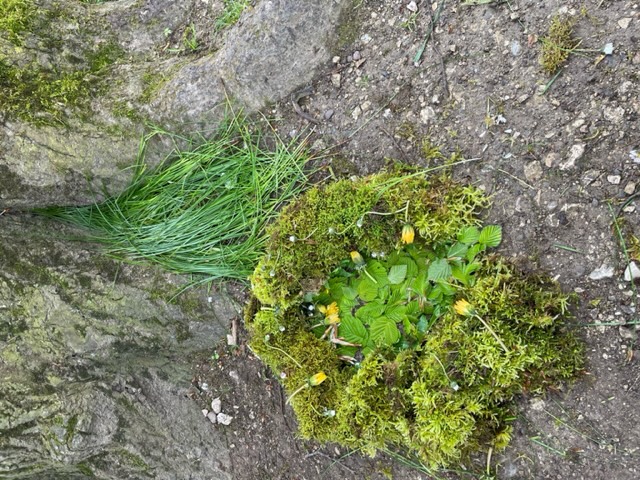 Am Mittwoch, 26. April behandelten die Kinder in der Themenwoche "Schere-Stein-Papier" das Thema "LandArt". Gemeinsam zogen sie am Morgen los und erschufen tolle Kunstwerke aus natürlichen Materialien, wie Blumen und Gräser.