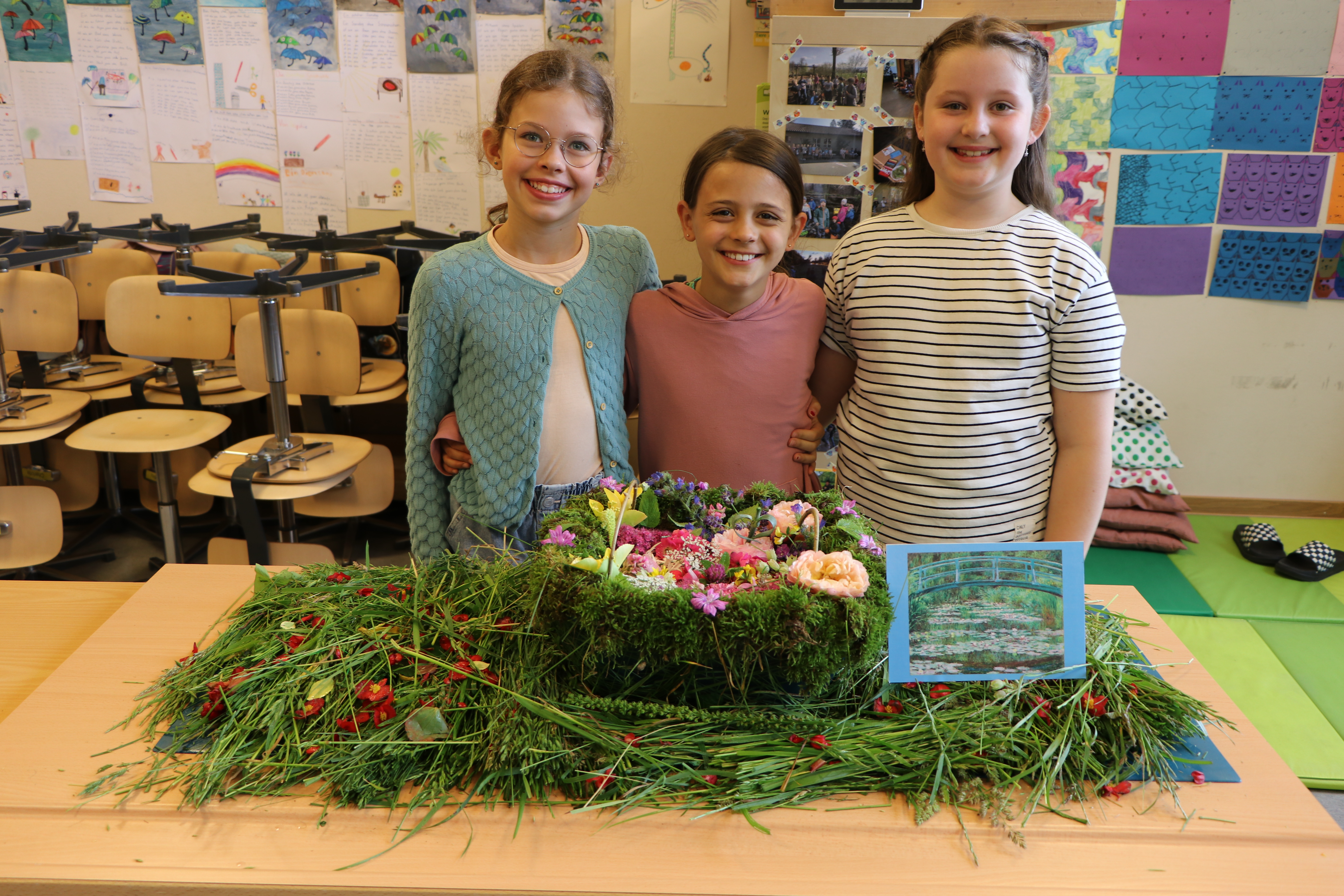Die Schülerinnen und Schüler der Klasse 3c interpretierten bekannte Kunstwerke mit Naturmaterialien.