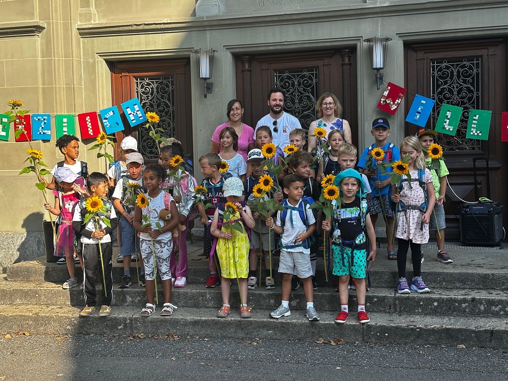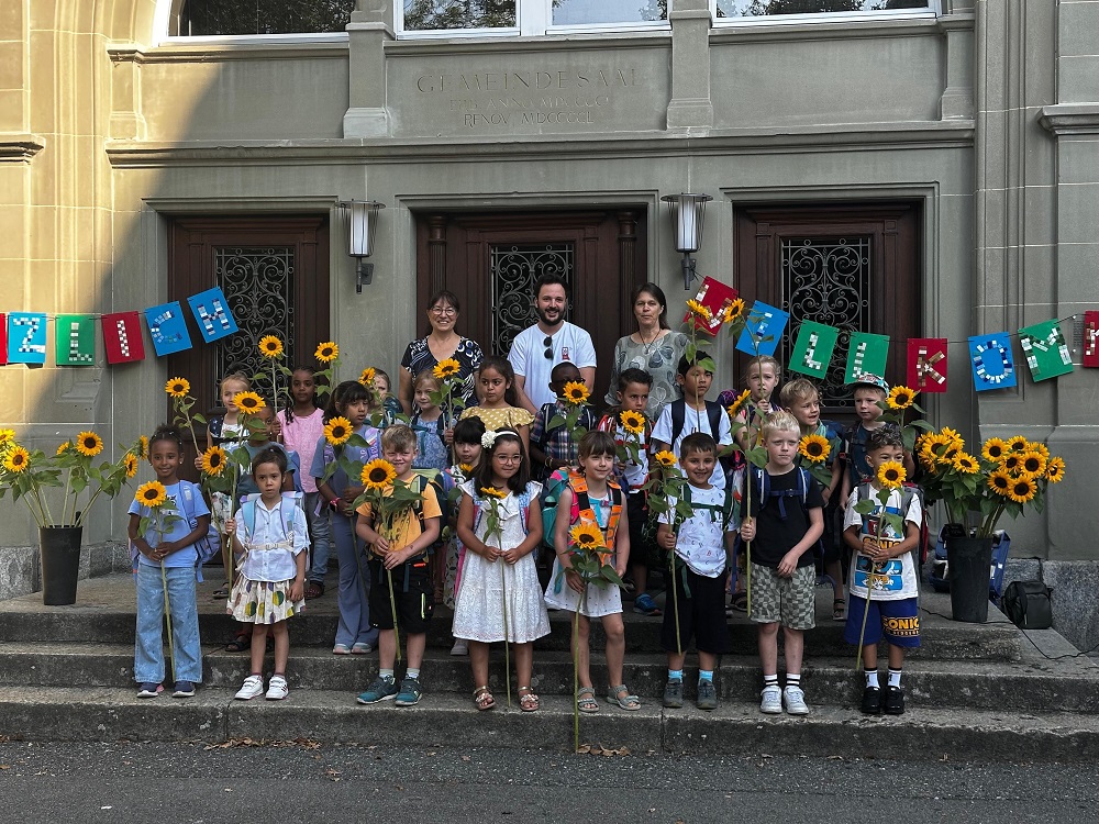 Am 11. August 2025 begrüssten wir, bei strahlendem Sonnenschein, unsere neuen Erstklässler vor der Turnhalle Altes Schulhaus.