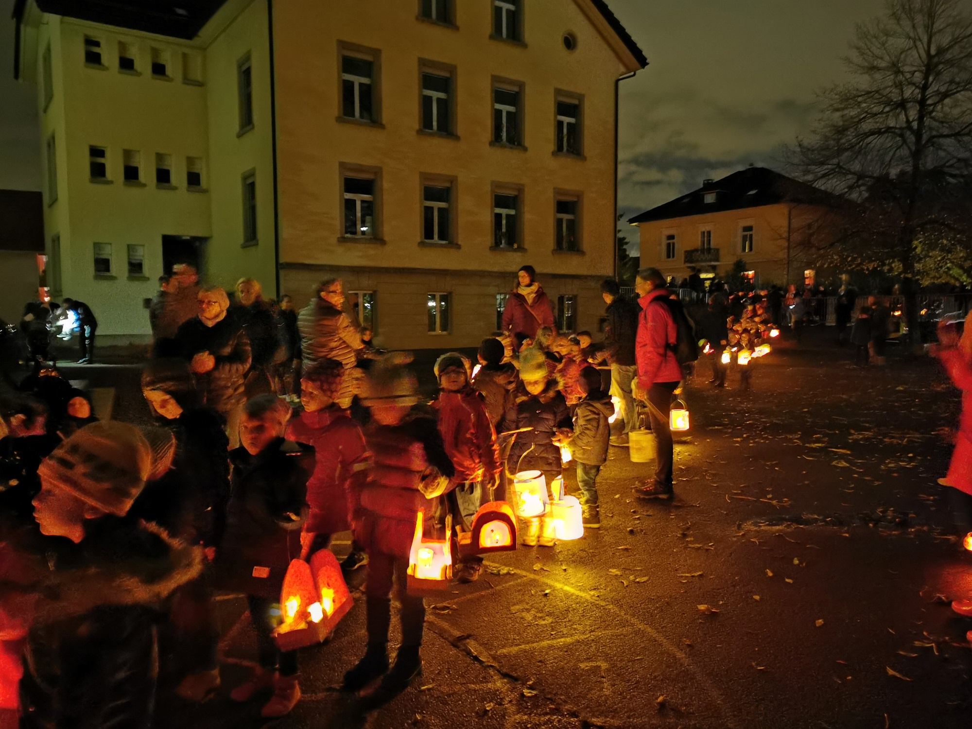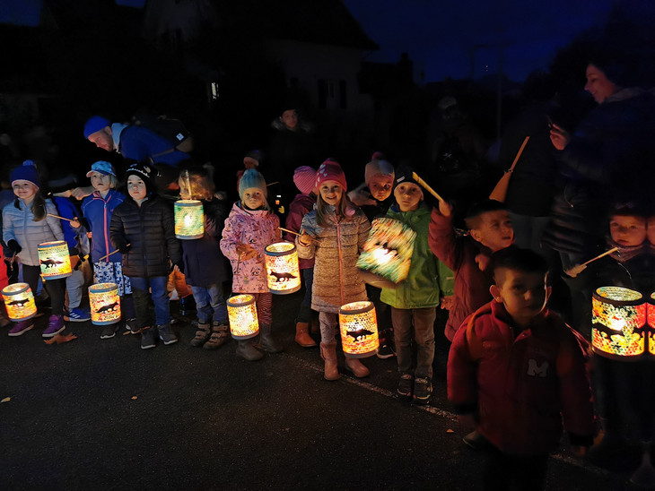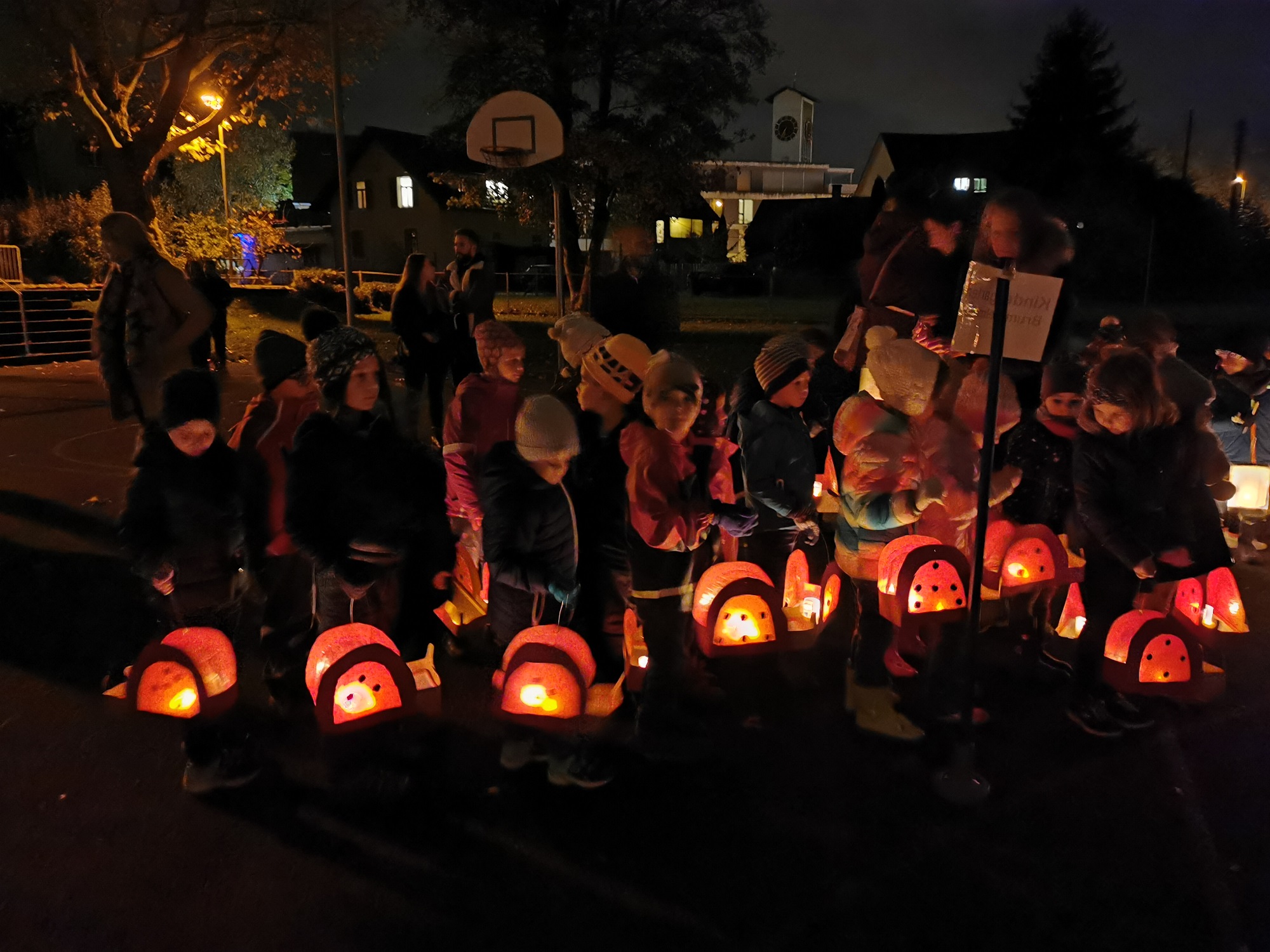 Stolz präsentieren die Kinder zum ersten Mal ihre selbstgebastelten Laternen bei der Besammlung vor dem alten Schulhaus. Gemeinsam geht es nun auf den Rundgang durchs Dorf um die Besucher am Wegrand zu verzaubern. Durch die Dunkelheit hört man "Ig ga mit mire Latärne und mini Latärne mit mir". Der krönende Höhepunkt ist danach der Riesenvulkan welcher mit vielen Oh's und Ah's bestaunt wurde. Ein gelungener Anlass der allen in schöner Erinnerung bleibt.