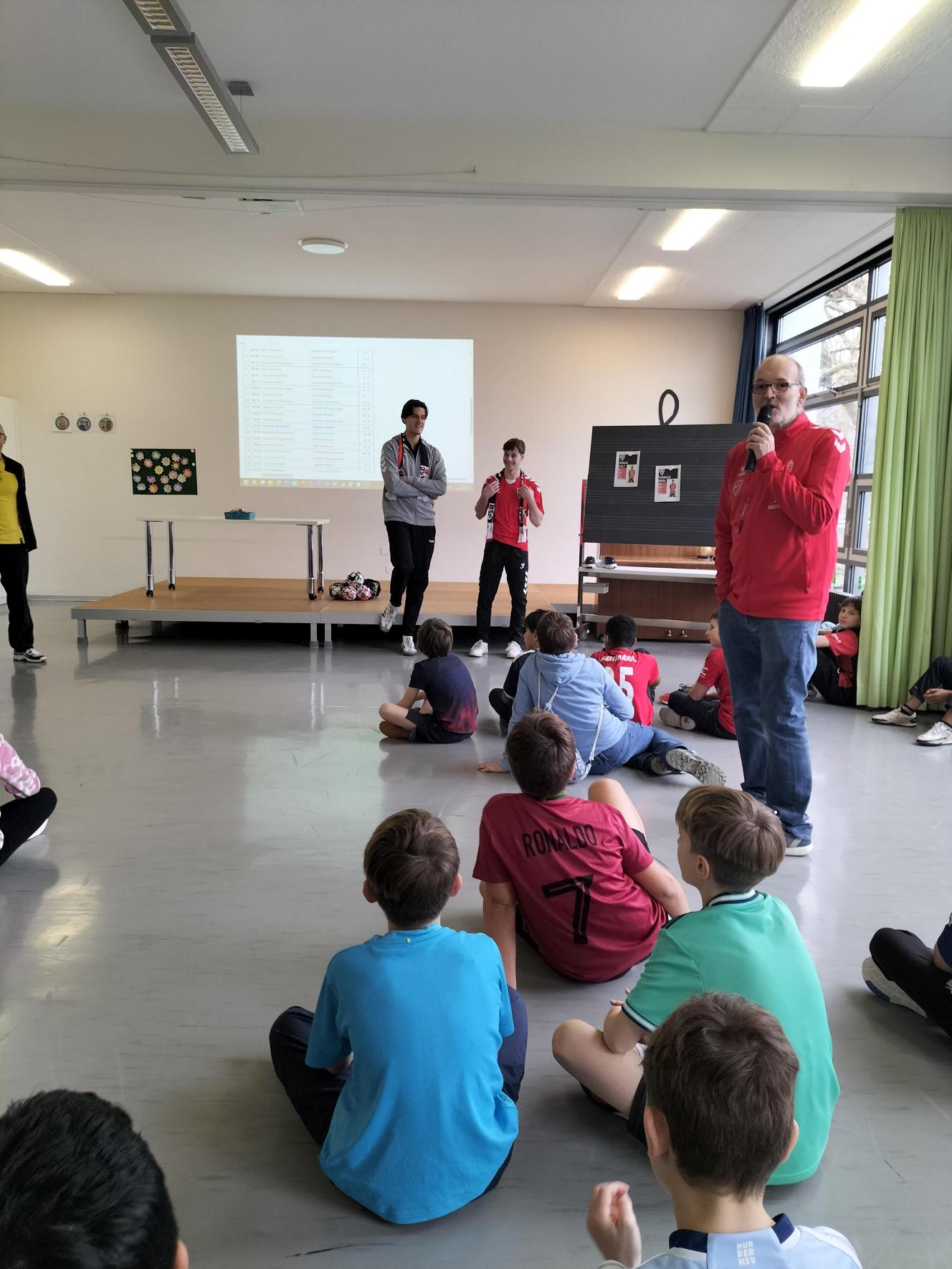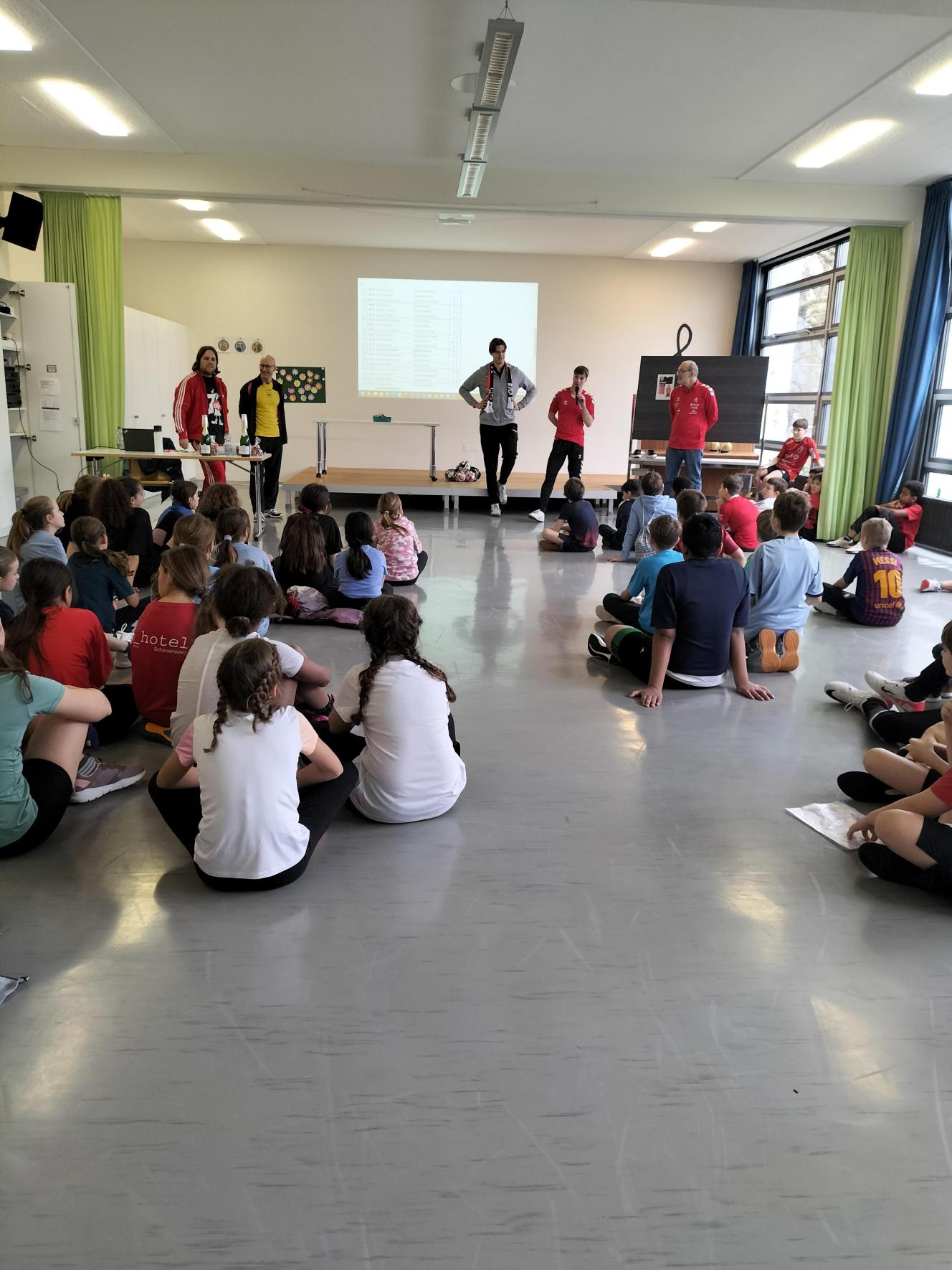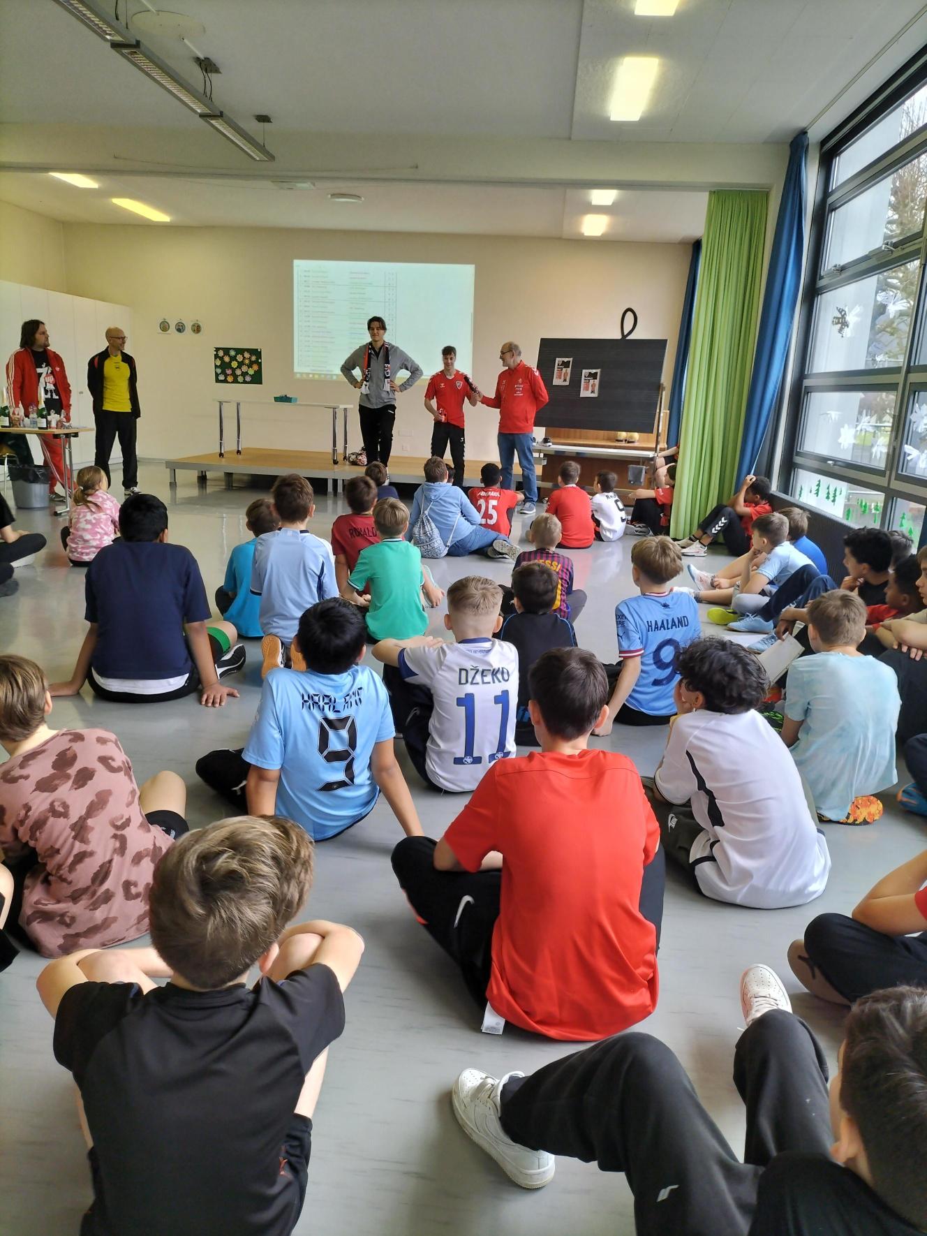Am letzten Schultag vor den Sportferien durften die 5. und 6. Klassen der Gysimatte sich in einem spannenden Softhandball Turnier messen. Tatkräftig unterstützt wurden die vier Klassen von Jonas Kalt und Thomas Bieri vom HSC Suhr Aarau.