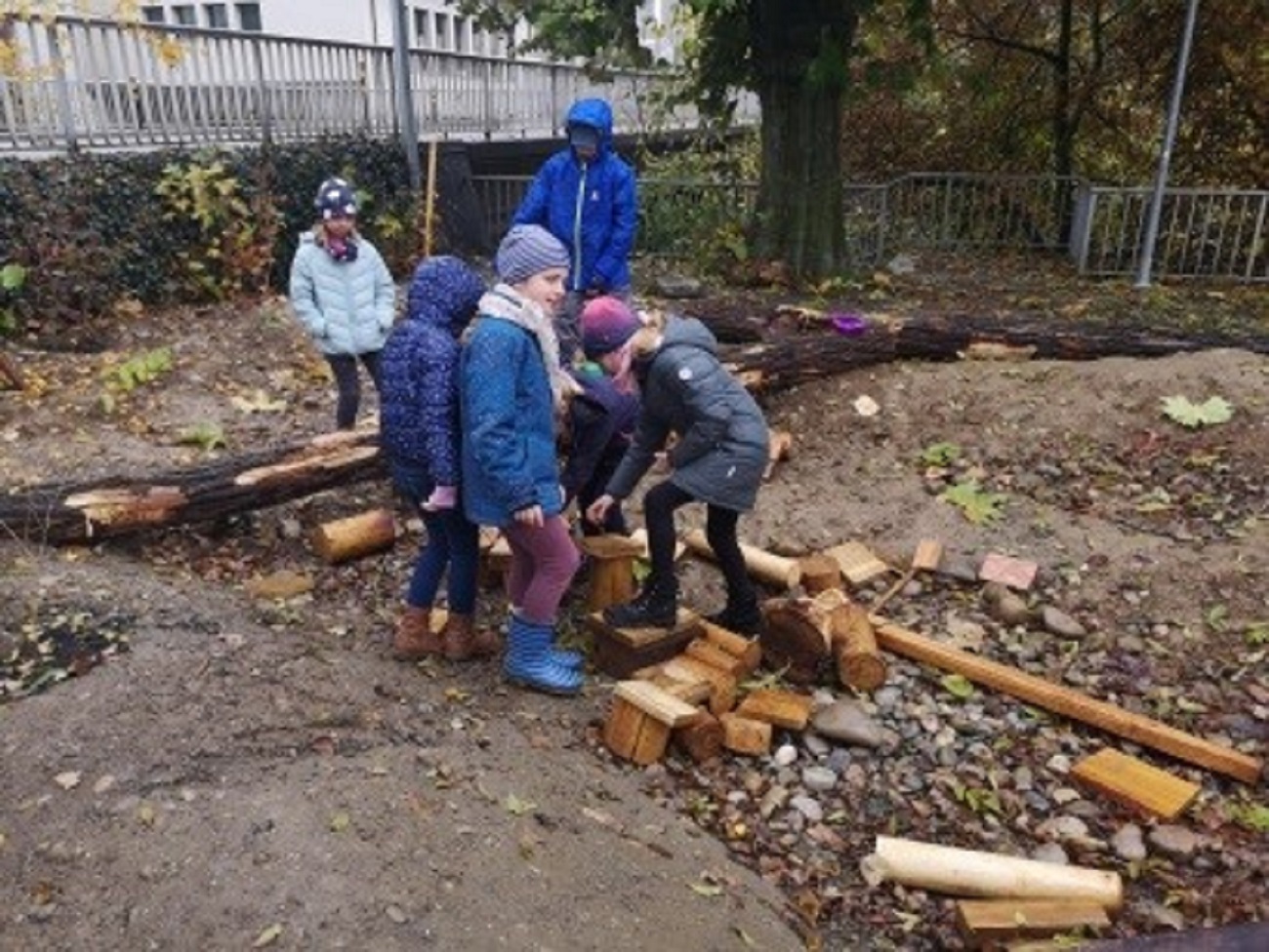 Unter kundiger und geduldiger Leitung der Firma Franz Weber Gartenbau, entstand in vielen Arbeitsstunden endlich ein Pausenplatz, welcher die Kinder auffordert zu balancieren, graben, entdecken und die Natur wachsen zu sehen. Hier können sich die Kinder auf eine gute Art verausgaben und noch viel Neues entdecken.