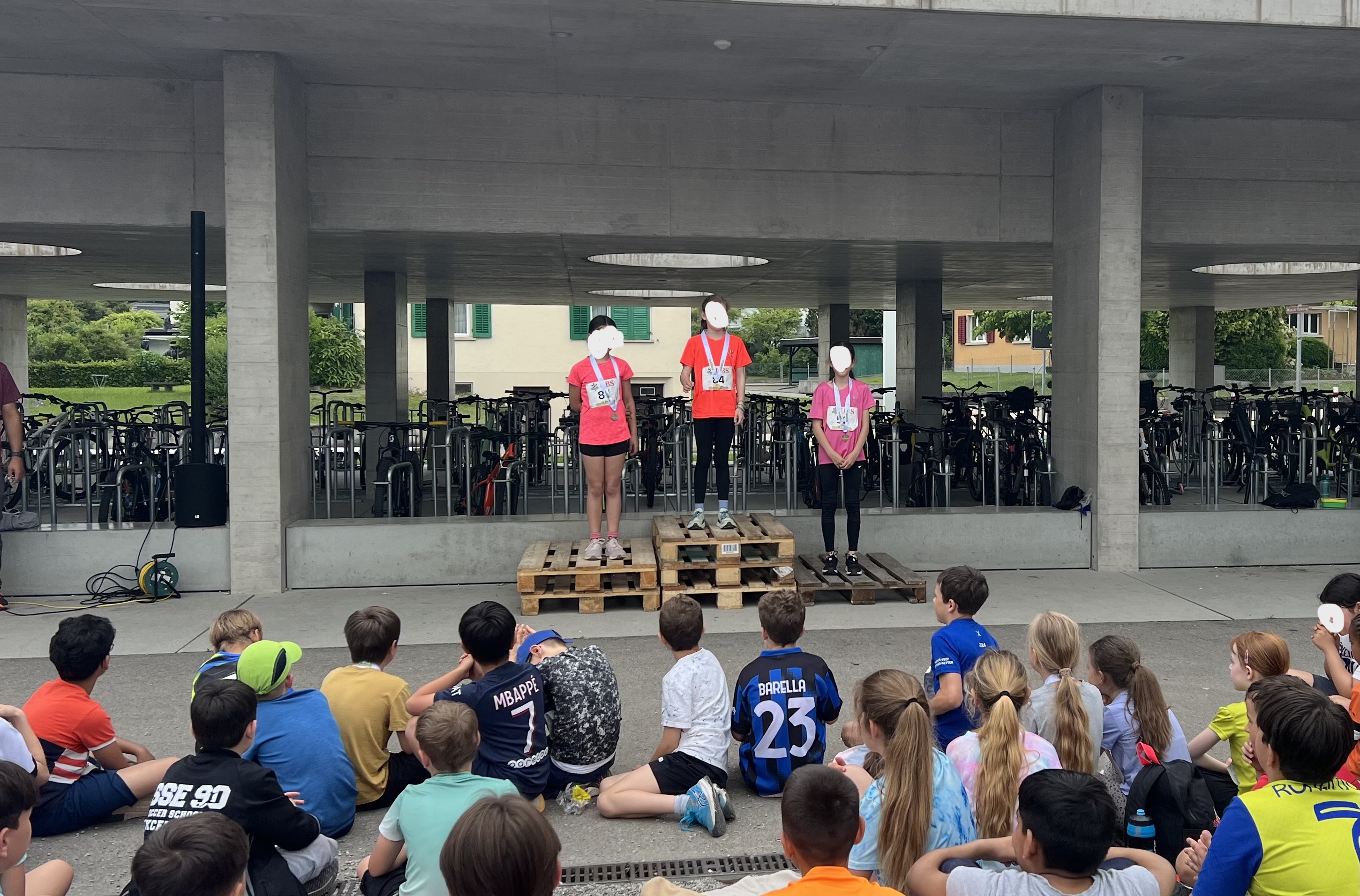 Am Dienstag, 22.Mai fand der diesjährige Sportmorgen des Zyklus 2 statt. Alle Kinder der 3. bis 6. Klassen des Schulhauses Risiacher zeigten ihr Können in den Disziplinen Ballweitwurf, Weitsprung und 60-Meter-Sprint. Die Kinder wurden mit “Öpfelschnitzli”, Schoggistängeli und Darvida versorgt. Neben den drei Disziplinen, durften die Kinder auf dem roten Platz verschiedene Spiele ausprobieren und sich austoben. Im Anschluss fand die Siegerehrung statt. Die Kinder auf dem ersten, zweiten und dritten Platz wurden mit einer Medaille belohnt und auf dem Siegerpodest gefeiert.