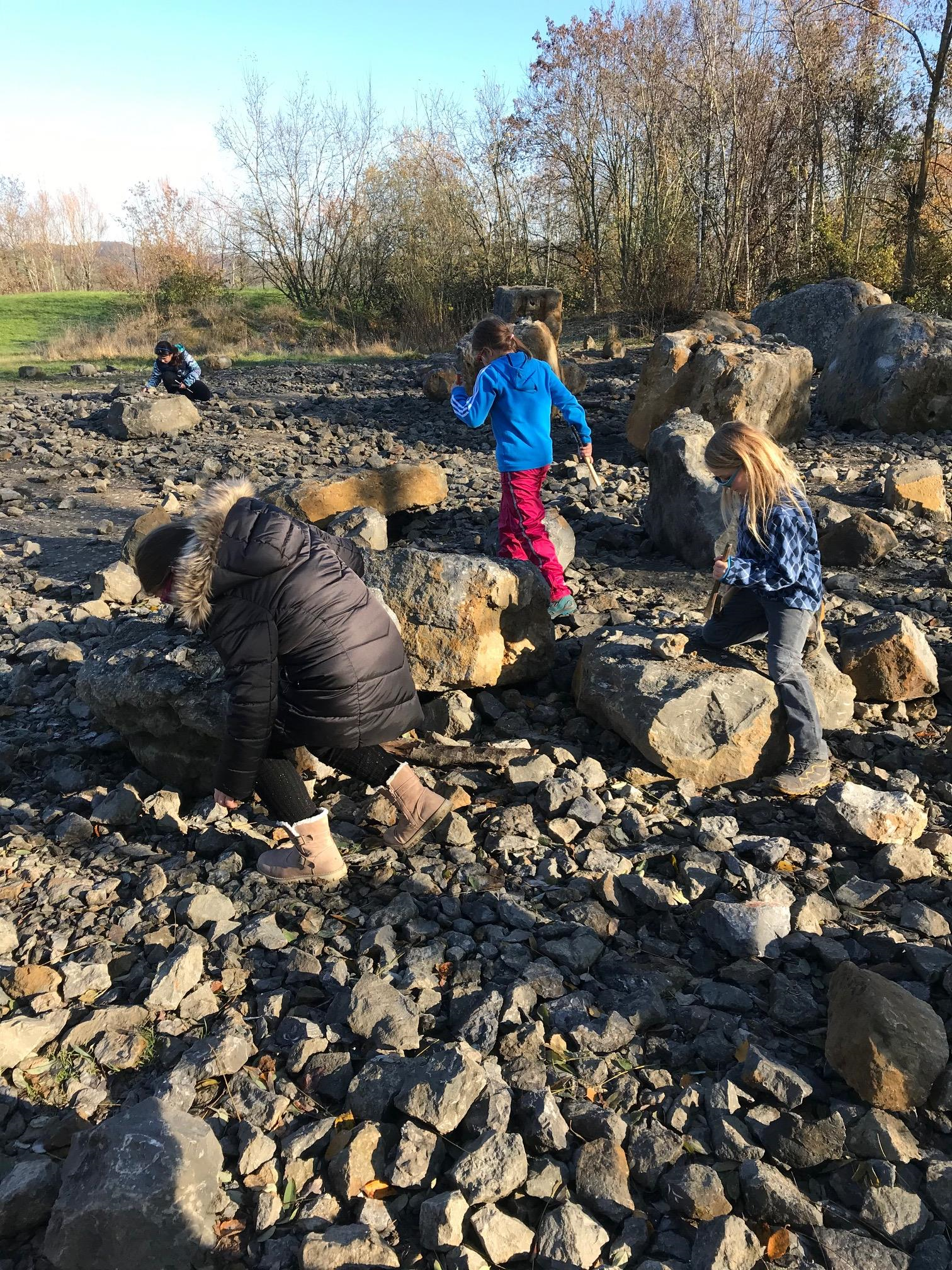 Nach dem Museumsbesuch wanderten wir zum Klopfplatz, wo wir mit Hammer und Meissel ausgerüstet nach Fossilien suchten. Wir fanden viele Versteinerungen!