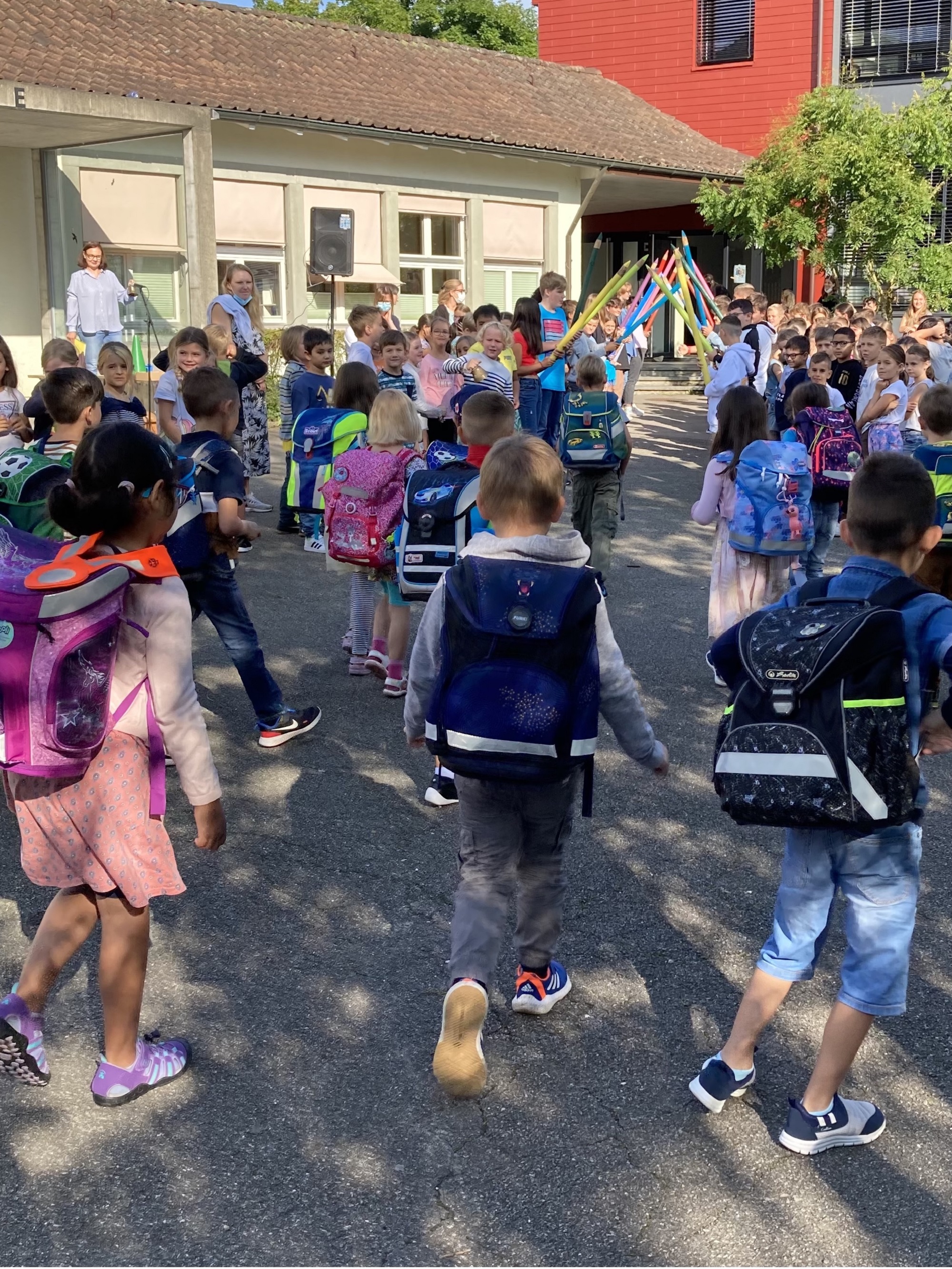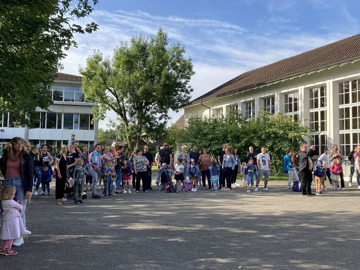 Lange haben die 42 Erstklässlerinnen und Erstklässler auf ihren ersten Schultag gewartet. Gespannt, voller Aufregung, Vorfreude und mit einem Lachen im Gesicht, warteten sie auf dem Pausenplatz auf die Begrüssung.