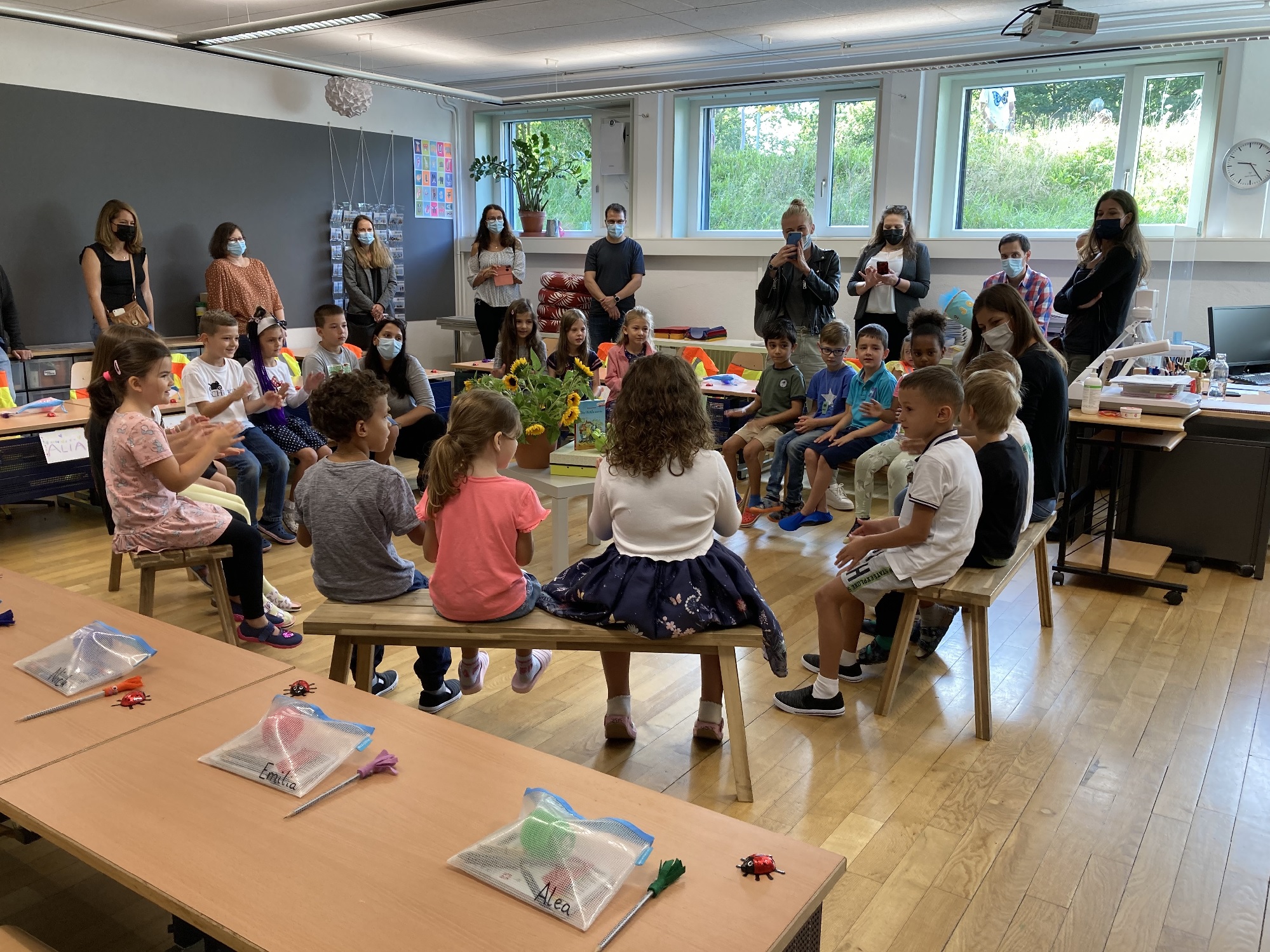 Auch die Eltern durften bis zur grossen Pause mit in die Klassenzimmer. Dort machten sich die Kinder spielerisch miteinander bekannt und durften eine erste Geschichte hören.