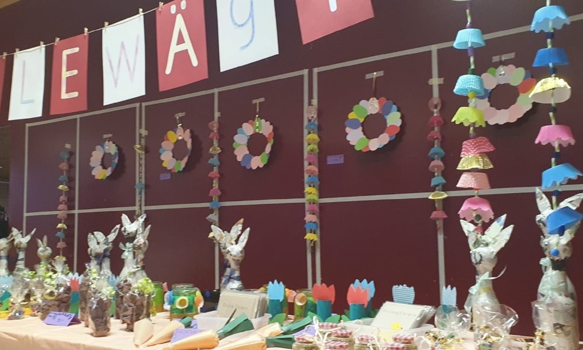 Pünktlich um 09.00 Uhr gingen am Samstag, 26. März 2023 die Türen des Frühlingsmarktes auf. Da das Wetter draussen traurig aussah, sah es in der Aula im Stäpflischulhaus umso fröhlicher und farbiger aus. Die Kindergartenkinder waren in den letzten Wochen unglaublich fleissig und haben gebastelt, gebacken, angeschrieben und letzte Vorbereitungen für den Markt getroffen. Auch Schüler und Schülerinnen der Oberstufe Aarau Rohr (Klasse von J. Schmid) sowie die 5. Klässler von C. Koller unterstützten uns in dieser Zeit an zwei Morgen bei der Herstellung.