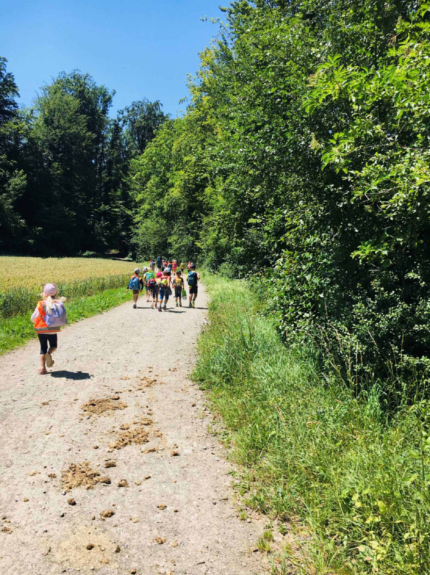 Aufgrund der Corona-Regelungen durften wir für unsere Kindergartenreise, keine ÖV benutzen. Das war für uns natürlich kein Problem. Wir haben das schönste «Plätzli» in Aarau Rohr am «Giessen» gefunden. Nach einem gemütlichen Marsch zum Aarschächli durften wir ein paar Enten auf dem Flachwassersee beobachten. Wir waren uns nicht sicher, ob es auch Schwertwale hat, da uns ein Schild ziemlich verunsicherte. Danach war es nicht mehr weit. Wir haben das schönste «Plätzli» gefunden. Nach einer kurzen «Znüni» Stärkung konnten die «Bären» und «Füchsli» das Wasser geniessen, Steine sammeln, Staumauer bauen und sich austoben.