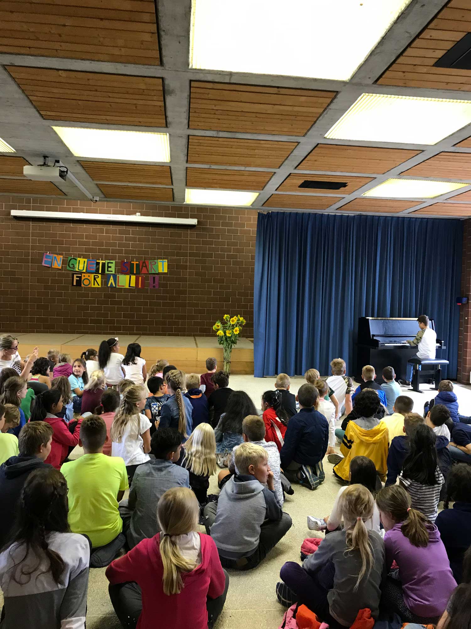 Die beiden kleinen Begrüssungsfeiern wurden stimmungsvoll mit Klavierspiel von David J. aus der 5. Klasse umrahmt.