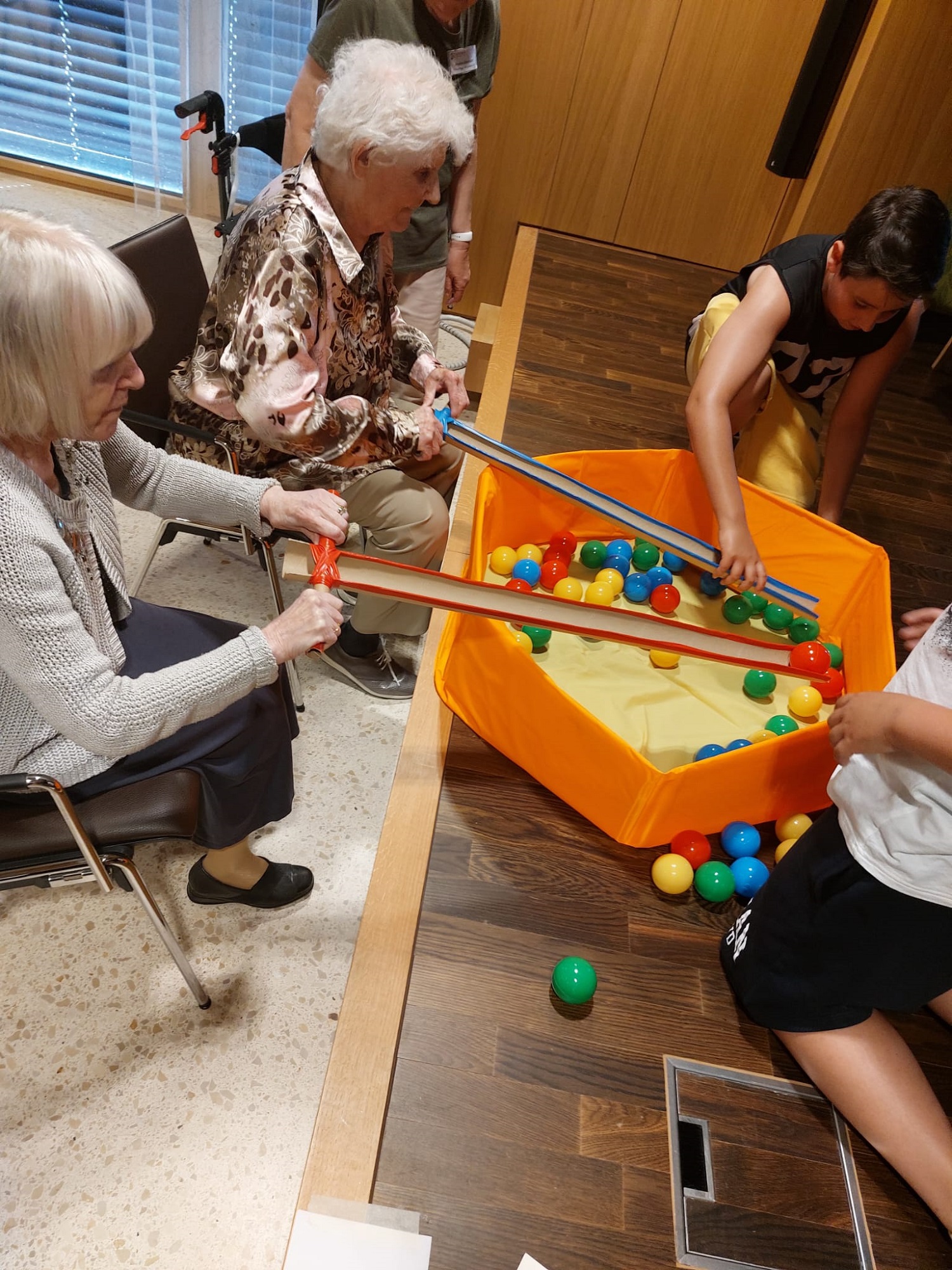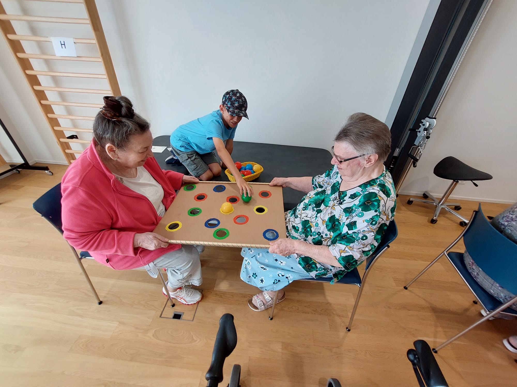 Bereits im Vorfeld gestalteten sowohl wir mit den Kindern als auch Frau Beyeler, die Aktivierungstherapeutin mit ihren Bewohner:innen einfache Spiele. Auf der Website «bewegenisleven.nl» fanden wir verschiedenste Ideen für abwechslungsreiche Spiele, die für Jung und Alt passten.