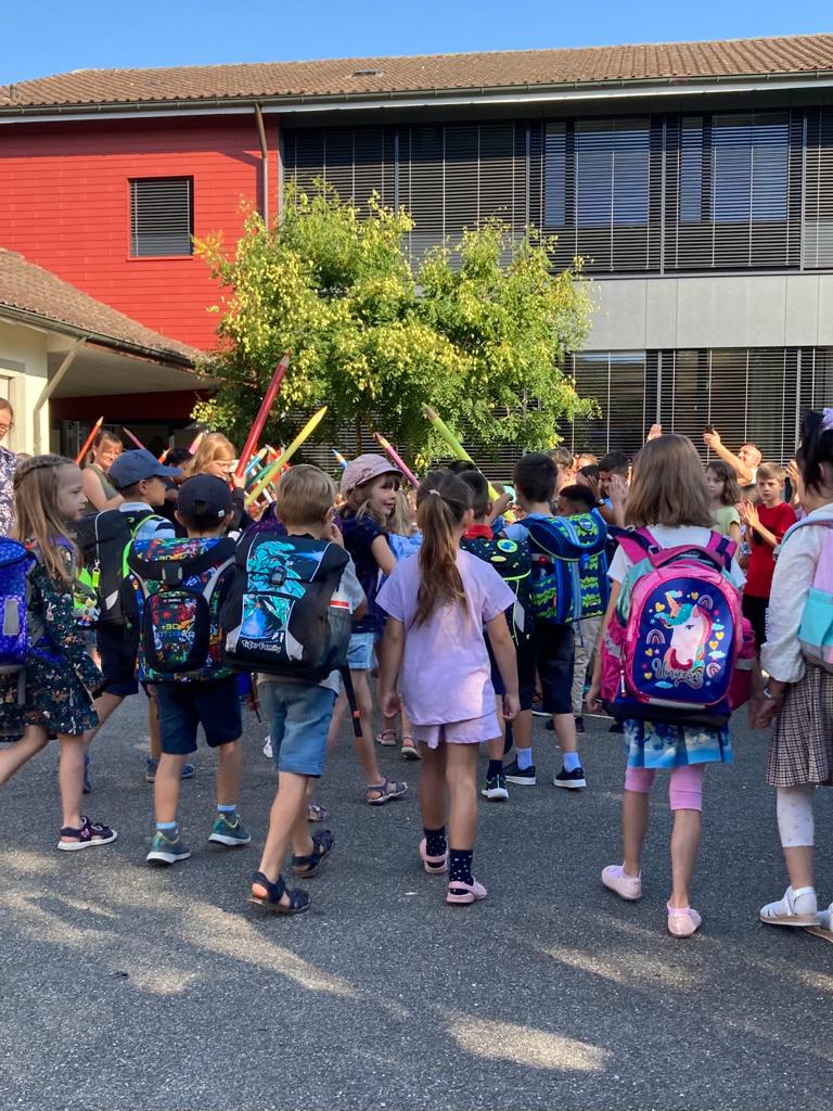 Bei wunderbarem Sonnenschein wurden die Schülerinnen und Schüler der neuen 1. Klassen feierlich begrüsst. Während der Feier konnte man in lauter freudige, aufgeregte und neugierige Gesichter blicken. Nun beginnt für sie eine spannende Reise durch die Schulzeit voller Entdeckungen, neuen Freundschaften und spannenden Lernmomenten.