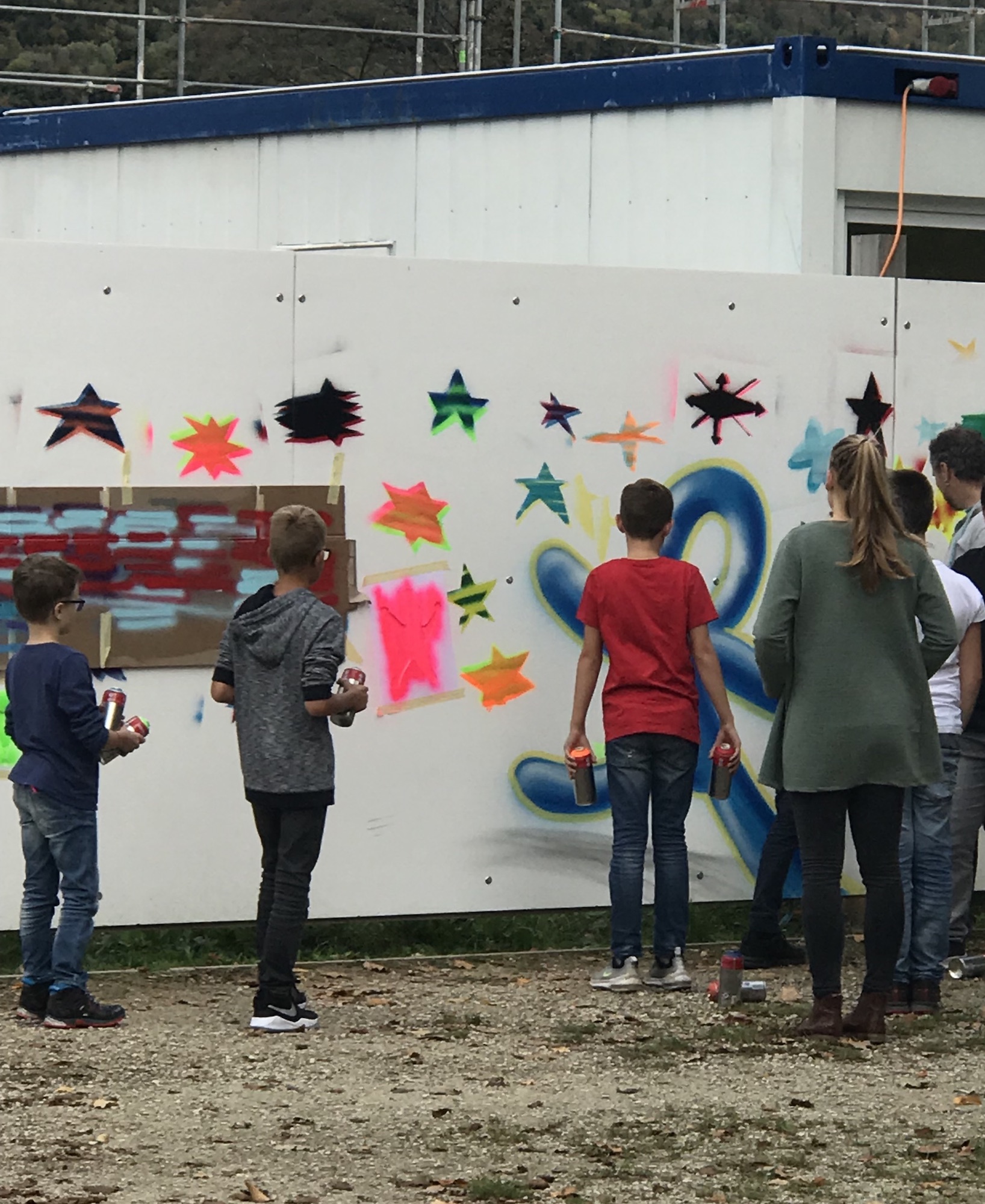 5. und 6. Klässler/-innen von Aarau Rohr sprayen Graffitis