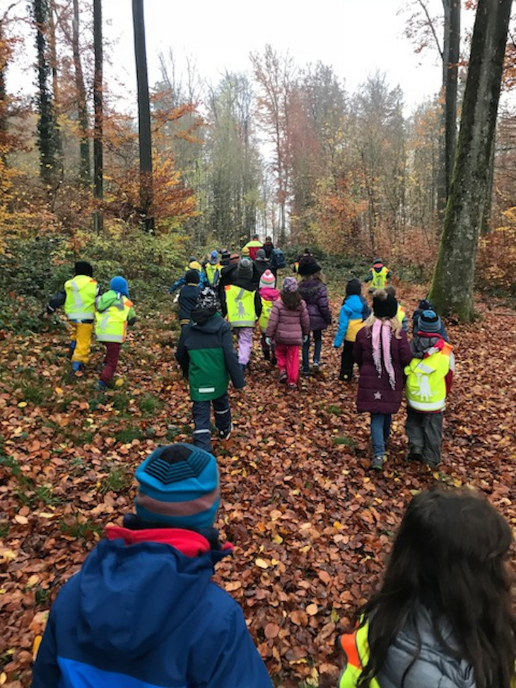 Am 15. November durften die 1. & 2. Klässler des Schachen-Schulhauses den Förster besuchen. Herr Wirz empfing die aufgeregten Kinder bei der Echolinde und startete sofort mit der Führung durch den Wald. Gespannt hörten alle zu, was Herr Wirz über den Wald erzählte. Die Kinder staunten, wie viel ein Förster über die Bäume und den Wald wissen muss. Auf unserer kleinen Wanderung entdeckten wir Bäume, die vom Sturm umgefallen waren, Vogelnester und vieles mehr. Wir durften auch verschiedene Felle von Waldtieren berühren.