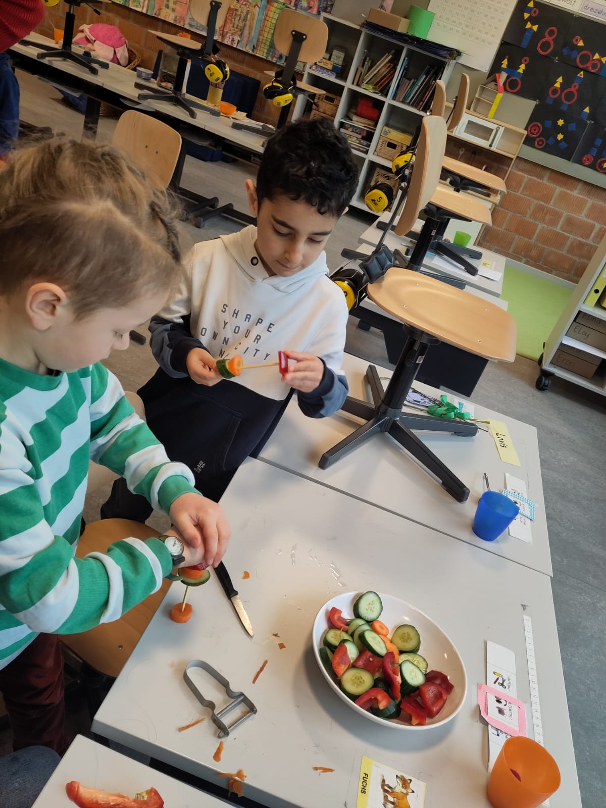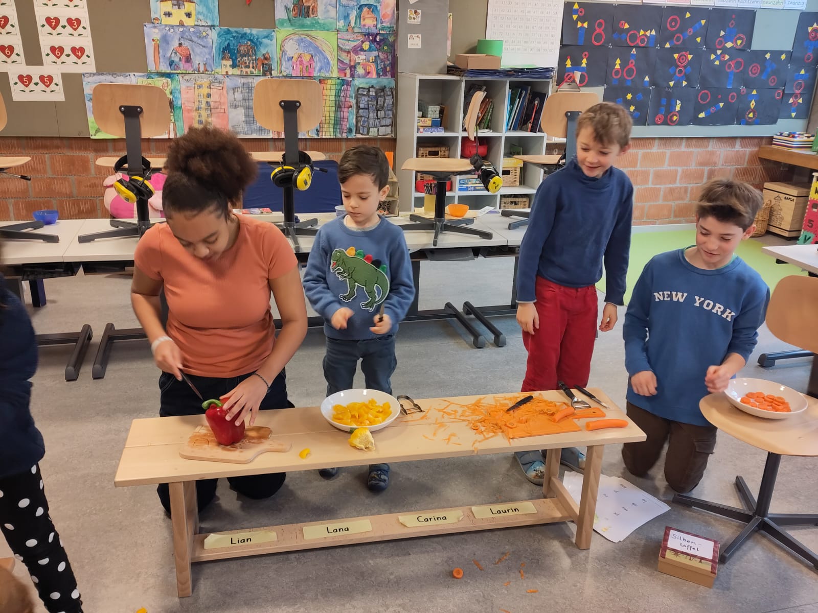 Vier Klassen bereiten ein Znüni für das ganze Schulhaus zu - dies wurde im Schülerrat gewünscht und prompt umgesetzt. Ein Highlight für alle.