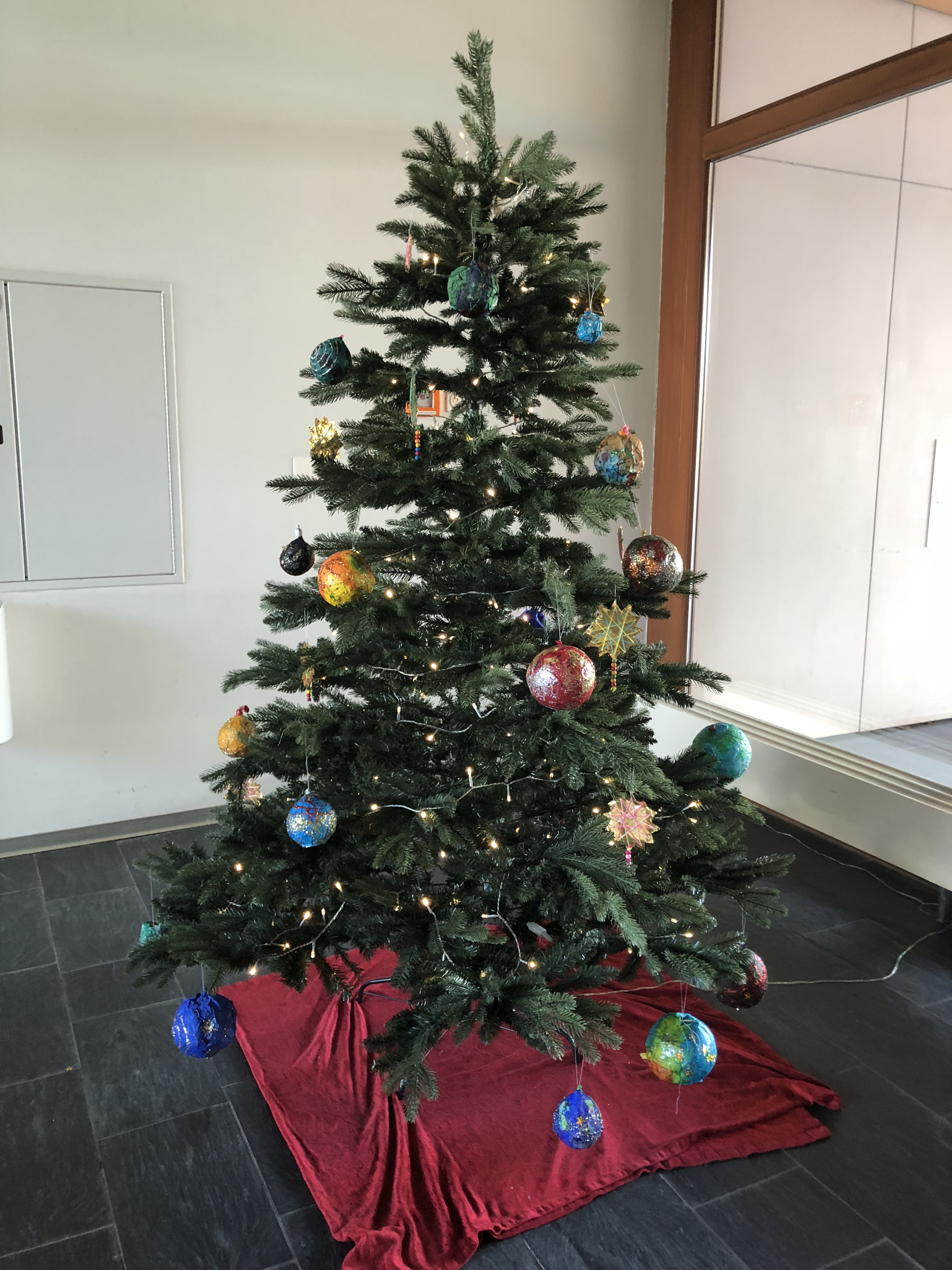 Erneut kann man bei Dunkelheit drei wunderschön dekorierte Adventsfenster bewundern. In diesem Jahr neu im Stil eines Schattentheaters in schwarz und weiss. Auch innerhalb des Schulhauses findet man Basteleien der Schülerinnen und Schüler, wie z.B. selbstgemachte Weihnachtskugeln am Tannenbaum und farbige Schneeflocken, die durch das Treppenhaus schweben.