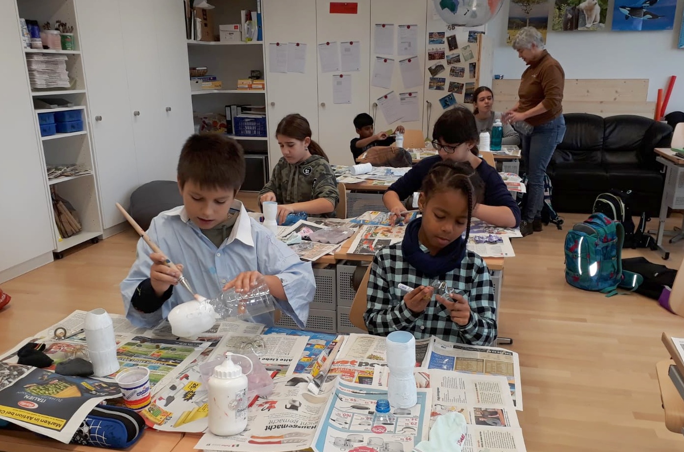 Fast schon traditionell übernahmen wieder die beiden 5. Klassen von Christin Glettig und Matthias Aegerter die Dekoration für das Zelt auf dem Telliplatz, in welchem das Kerzenziehen angeboten wird. In diesem Jahr sind es herzige Schneemännli, die aus alten PET-Flaschen gebastelt wurden.