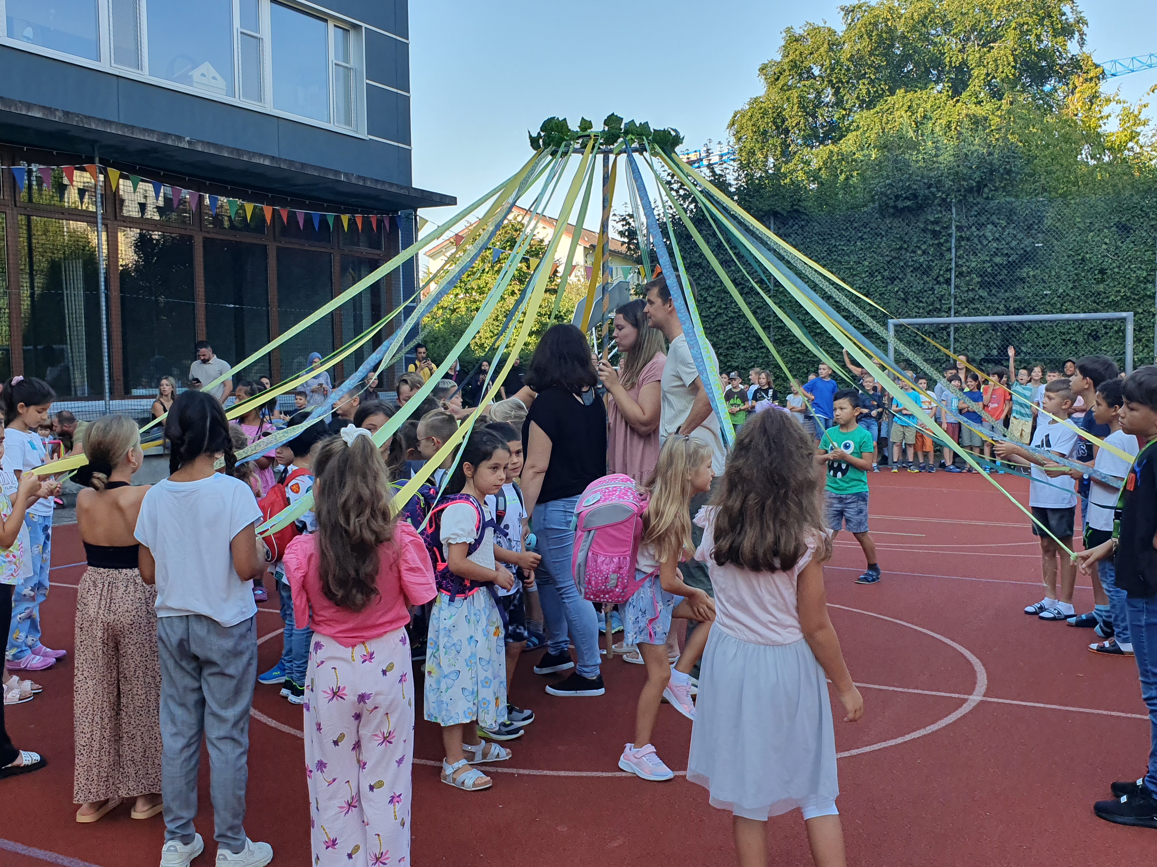 Mit einer kleinen Ansprache, dem Singen des Telli-Lieds und dem traditionellen Besammeln unter dem Telli-Baum hiessen wir unsere neuen Erstklässlerinnen und Erstklässler herzlich willkommen und starteten gemeinsam ins neue Schuljahr 2023/24.
