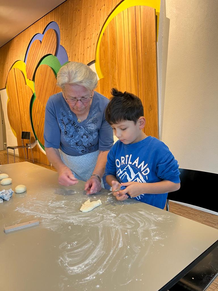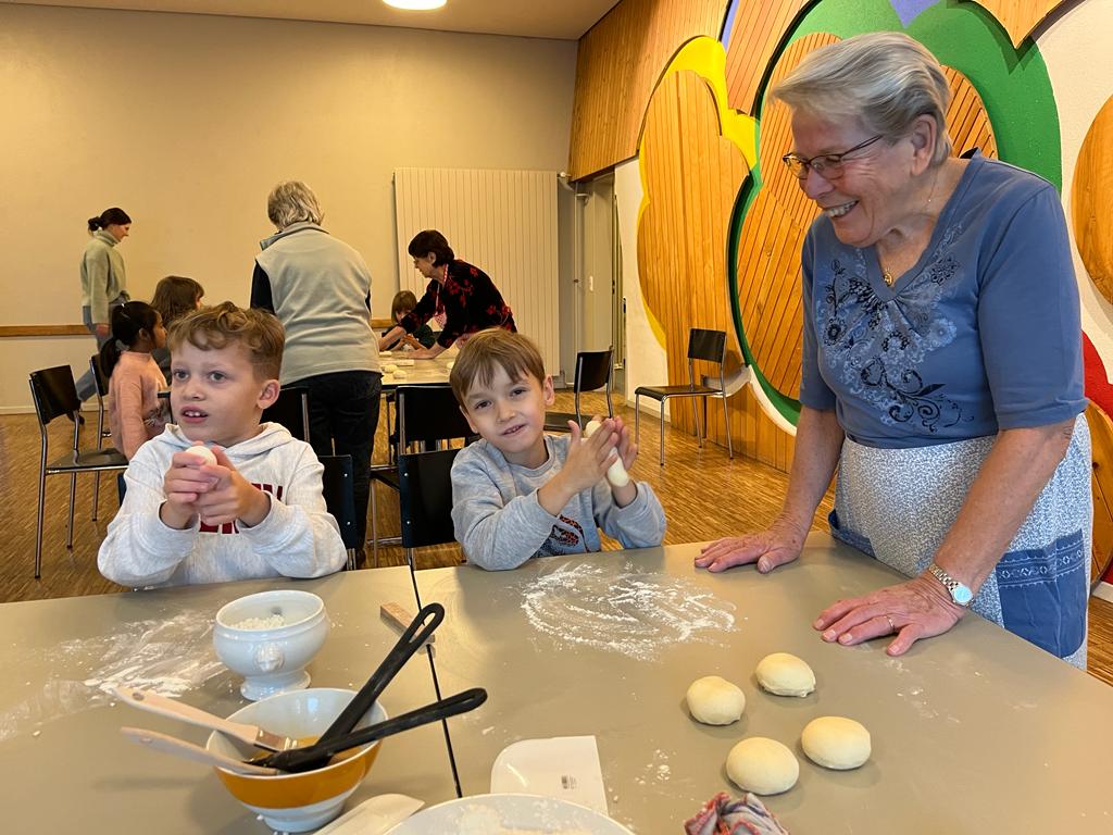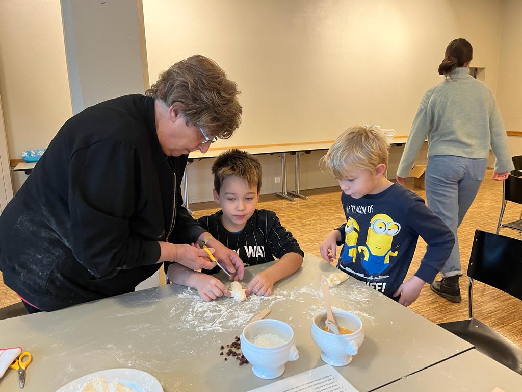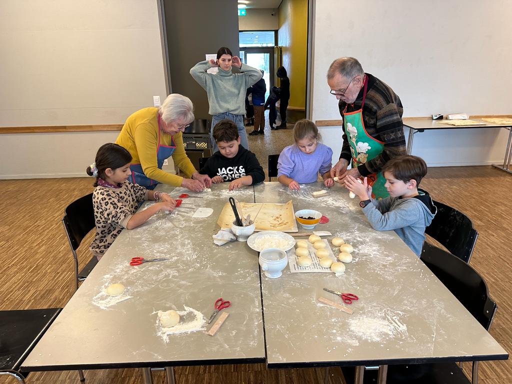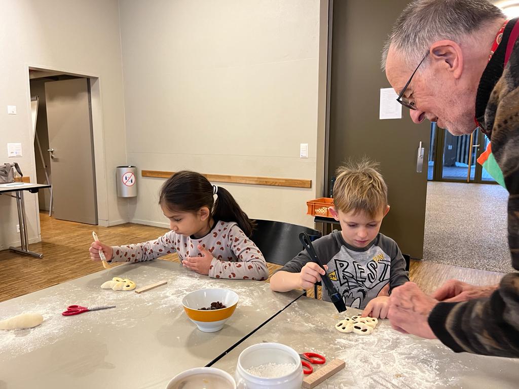 Wie jedes Jahr im Dezember durften die 1.-4. Klassen mit Hilfe von freiwilligen Personen des GZ Telli Grittibänke backen.