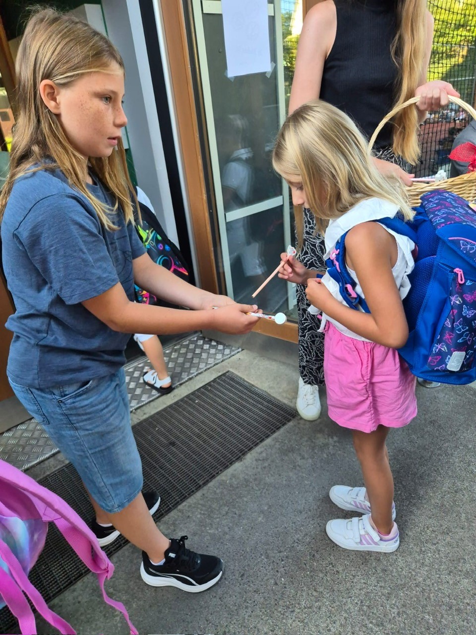 Mit unserem kleinen, traditionellen Anlass haben wir bei herrlichem Sommerwetter unsere neuen Erstklässlerinnen und Erstklässler im Tellischulhaus begrüsst. Wir wünschen allen Kindergartenkindern und Primarschülerinnen und -schülern ein tolles Schuljahr 2025/26.