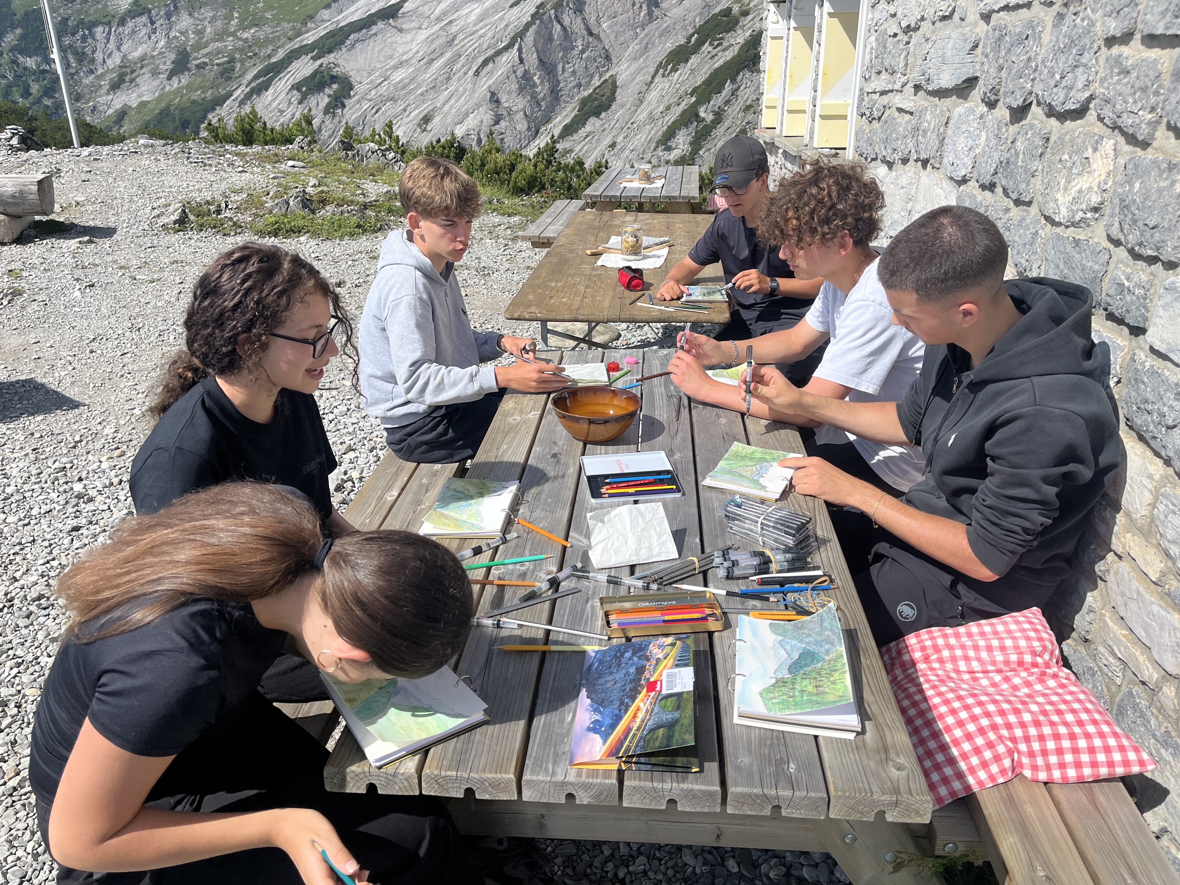 Dies im Rahmen des Alpenlernens, einem Angebotes des SAC. Während dieser Woche haben sich die Jugendlichen mit der Fauna der Bergwelt, Karten und Orientierung und bildnerischem Gestalten auseinandergesetzt. Aber auch Themen wie Klettern und Sichern, die dazugehörige Seilkunde sowie das Gehen am kurzen Seil gehörten dazu. Hüttenleben auf 2000 m.ü.M unter einfachen Verhältnissen inbegriffen. Es war schön. Die Ruhe am Abend, die Sonnenuntergänge, das Zusammensein und die gute Stimmung. Aber auch die erste Dusche nach einer Woche, sie war ein Genuss.